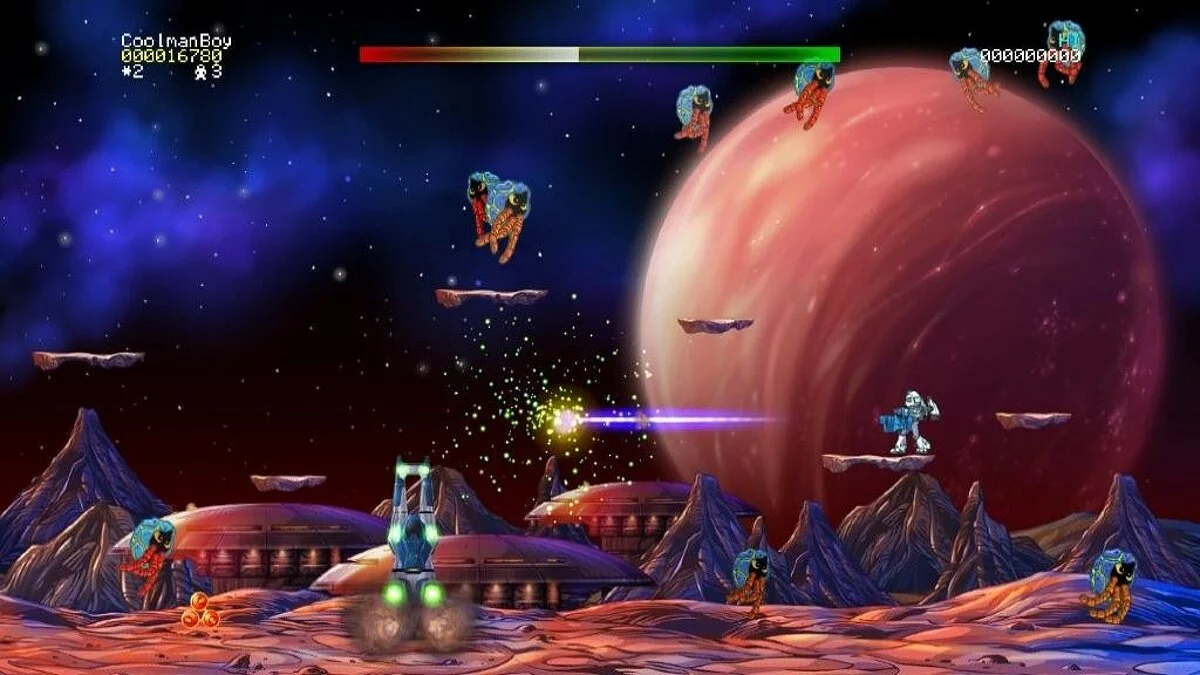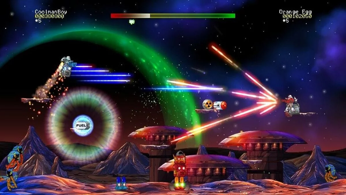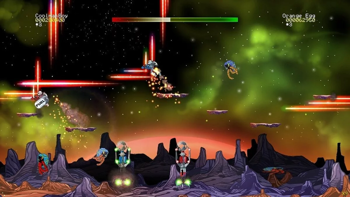 Геймплей Jetpac Refuelled — это идеальный микс простоты и хаотичного экшена. Вы перемещаетесь по экрану, подбирая части корабля и баллоны с топливом, одновременно стреляя во все стороны, чтобы защитить свою ценную находку. Каждый уровень — это новая планета со своими ландшафтами и, конечно же, новыми видами инопланетной фауны, жаждущей вашего скафандра. Игра предлагает целых 128 уровней, так что скучать вам точно не придется. А еще здесь есть кооперативный режим и мультиплеер до 4 игроков! Представьте: вы и ваши друзья, вооруженные до зубов, пытаетесь собрать одну ракету, пока вокруг вас кипит межзвездная бойня. Это как «Мстители», только вместо Тони Старка — вы в старом добром скафандре, а вместо Нью-Йорка — далекая планета, населенная пиксельными монстрами.