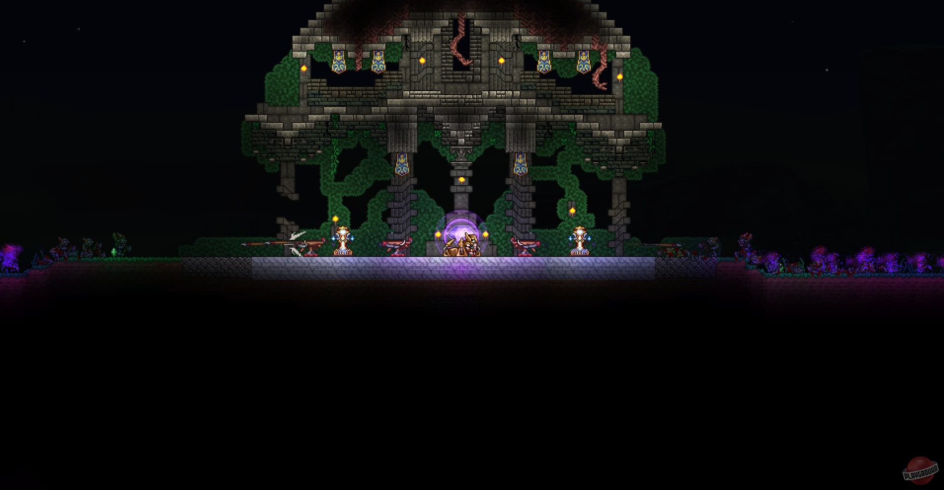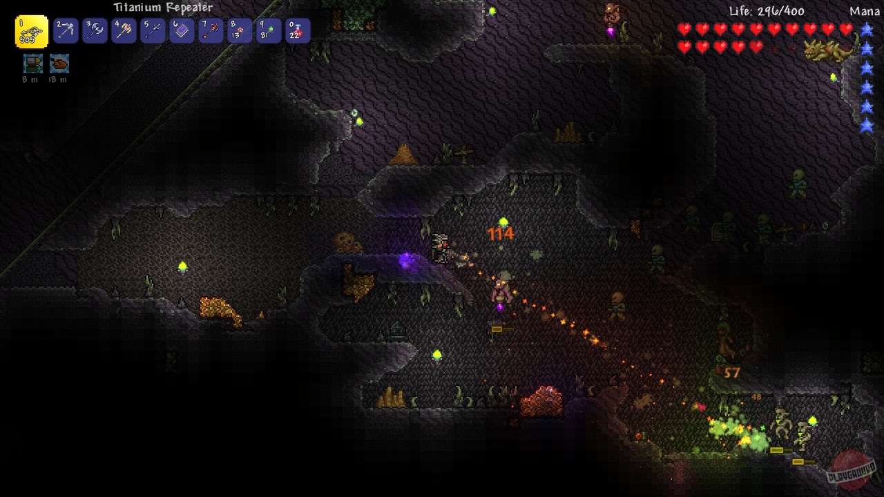 С самого первого дня (точнее, с первой минуты) вас ждёт безумный микс жанров: это и исследование процедурно генерируемого мира, и крафт сотен предметов, и строительство невероятных сооружений, и эпичные сражения с боссами, которые, кажется, только что сошли со страниц комиксов. Вы будете рыскать по разнообразным биомам — от солнечных пляжей и тёмных подземелий до жутких болот и парящих в облаках островов, — собирая ресурсы, чтобы создать всё: от простого деревянного меча до лазерной пушки, способной расплавить даже самого наглого слайма. И да, здесь есть слаймы. И зомби. И гигантские черви. И клоуны-камикадзе. Словом, скучать точно не придётся!