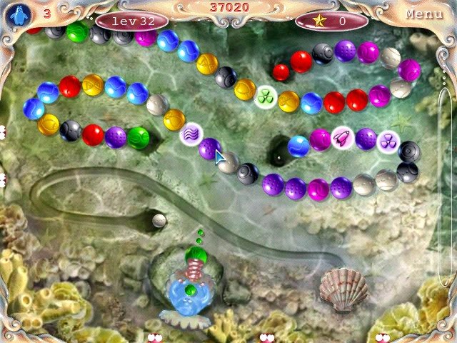 Геймплей Приключения Акватика — это идеальный микс простоты и затягивающего азарта. Ваша задача — стрелять разноцветными жемчужинами из своего подводного катапульта-бластера, чтобы собирать цепочки из трех и более шариков одного цвета. Звучит знакомо? Но не спешите думать, что это просто еще одна игра-зума! Здесь вас ждет целая эпопея из 80 уникальных уровней, разбросанных по четырем разным океанам, каждый со своими визуальными фишками и головоломками. Вы будете не просто стрелять, а продумывать тактику, использовать бонусы и ловко маневрировать, чтобы цепочка злобных шариков не добралась до конца трека. Это как "Тетрис" на кислородных баллонах или "Мраморный взрыв" в мире Ариэль!