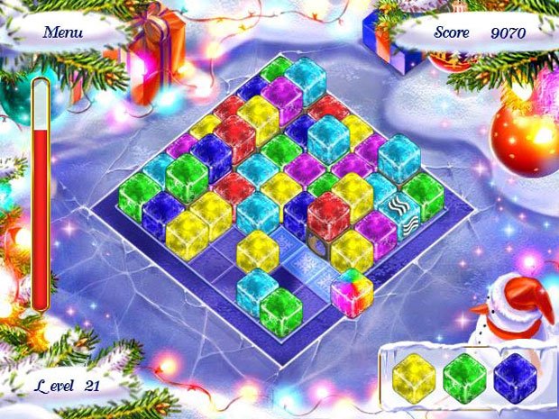Xmas Blox - трехмерный рождественский пазл, в котором игроки очищают заледеневшее игровое поле от разноцветных кубиков и препятствий, собирая очки. Располагайте кубики одного цвета по три и более в линии. За исчезновение каждого из них, вы получаете по 10 очков.