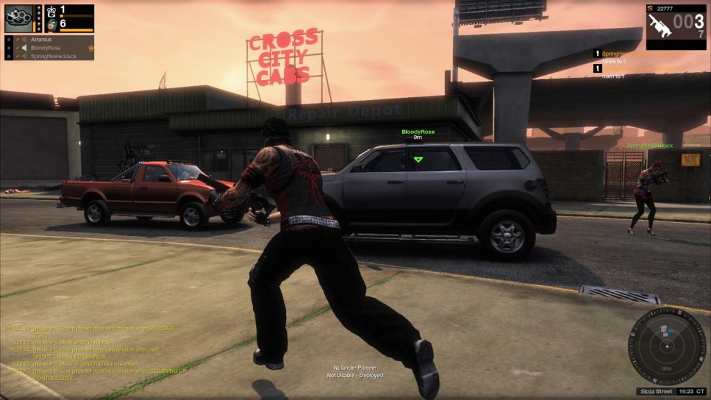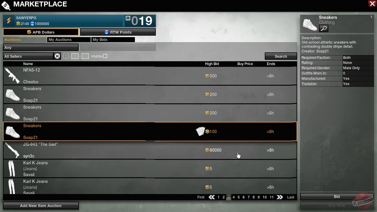 В APB игрокам предоставлена крайне богатая система кастомизации персонажа - здесь можно нарядить своего бойца по своему вкусу. Город условно разделен на "социальный" и "боевой" районы города - в социальных игроки общаются друг с другом, покупают вещи и детали для автомобилей, а в боевых - выполняют различные задания и вступают в перестрелки с остальными жителями города, которые находятся по другую сторону баррикад.