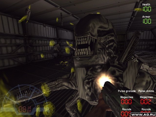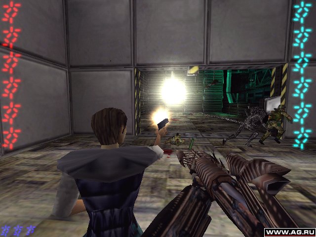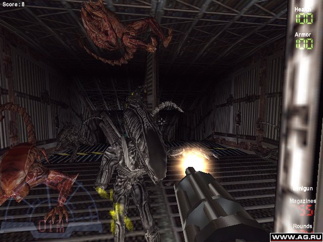 Aliens vs. Predator - 3D Action появившийся благодаря компании Rebellion, решившей смешать Хищника и Чужого в один безумный коктейль, наполненный кровью невинных жертв молящих о пощаде. Игра может идти как по сети, так и в весёлой компании компьтерных ботов. Графика для 1999 года неплохая, поэтому если душой вы всё ещё в далёких 90-х и цените качественное мочилово, советую поиграть