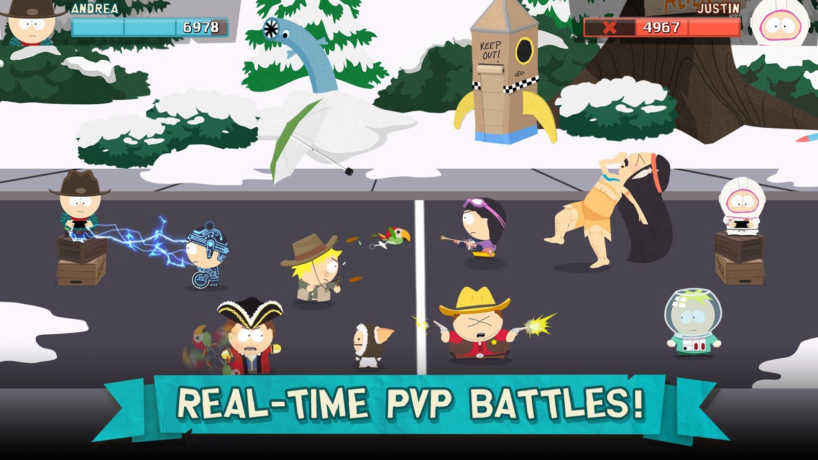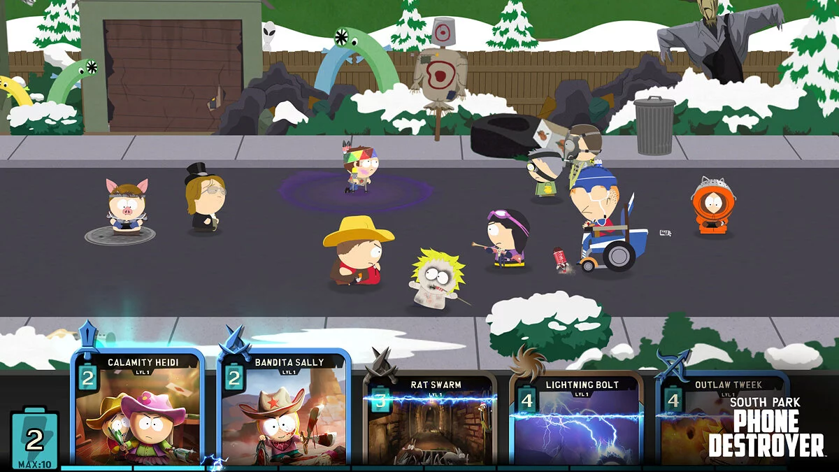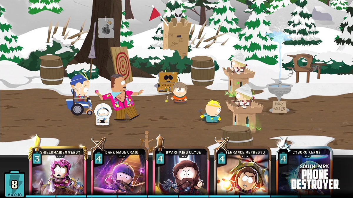 Геймплей South Park: Phone Destroyer прост, как план Картмана по захвату мира, но глубок, как его любовь к еде. Вы собираете и прокачиваете сотни карт с персонажами, заклинаниями и предметами из вселенной сериала, распределяя их по классам: Мясник, Техно, Мистик, Ловкач и другие. Главная фишка — это реальные PvP-сражения в режиме реального времени, где нужно не просто тыкать пальцем, а продумывать тактику: правильно выбирать колоду, вовремя активировать ультимейты и предугадывать ходы противника. Хотите натравить толпу канадцев на врага? Пожалуйста! А может, запустите в него ракетой из задницы Мистера Гаррисона? И это ещё не всё — помимо PvP, вас ждёт увлекательная сюжетная кампания, наполненная фирменными диалогами, отсылками к культовым эпизодам и сарказмом, от которого даже ваш телефон покраснеет.