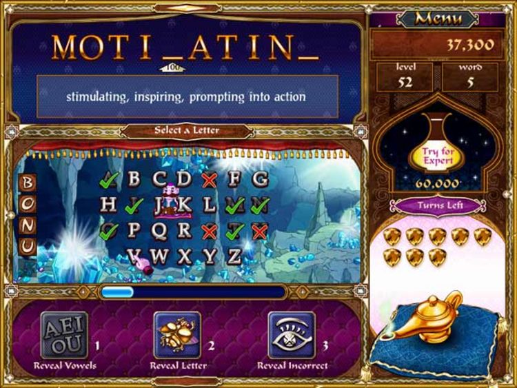 Геймплей SandScript построен на классическом принципе «виселицы», но доведен до совершенства. Перед вами появляется загаданное слово, представленное в виде ряда пустых клеток. Ваша задача — угадать его, предлагая буквы по одной. Каждая верная буква раскрывает часть слова, а каждая ошибка приближает вас к грустной судьбе нашего джинна. Но не волнуйтесь, даже если вы чувствуете себя полным «нулем» в лексиконе, игра щедро вознаграждает смекалку. За правильно отгаданные слова вы получаете не только бонусные очки, но и настоящие сокровища! Собирайте их, чтобы продемонстрировать свою эрудицию и проложить путь от одиноких Пирамид до величественного Дворца Слоновой кости. Всего вас ждет 80 уровней с более чем 13 000 уникальных слов, так что скучать точно не придется. Это идеальный способ совместить приятное с полезным: развиваете память, расширяете словарный запас и получаете море удовольствия.