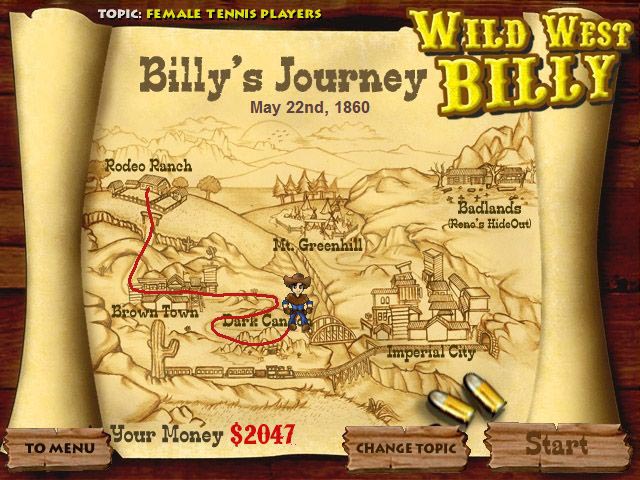 Wild West Billy - представляет собой головоломку со словами. Мы играем за бравого ковбоя Билли, который учится метко стрелять не только пулями, но и словами. Проверьте свои знания в области музыки, кинематографа, ТВ-шоу. Зарабатывайте доллары, выстраивая слова на заданную тему. В режиме Last Bullet Mode будет сложнее всего, потому что предоставляется всего одна попытка отгадать слово.