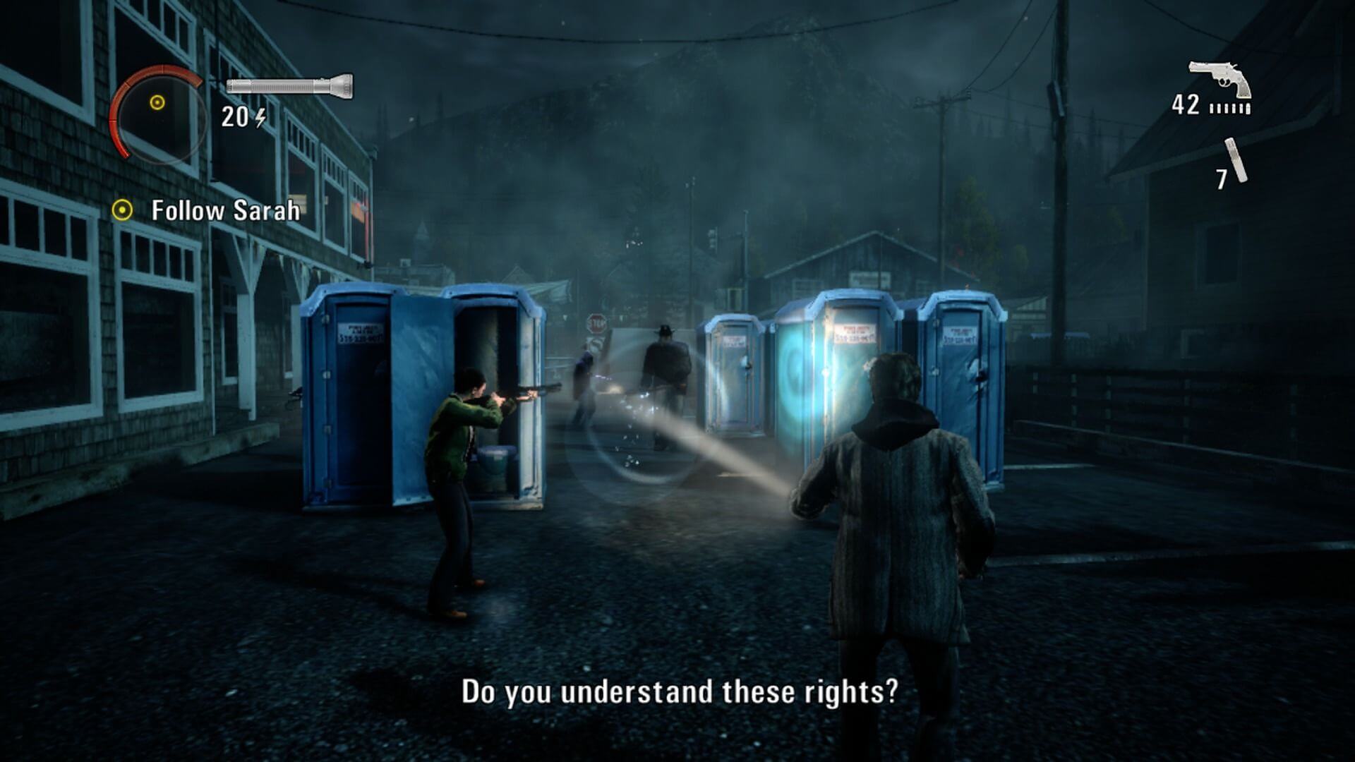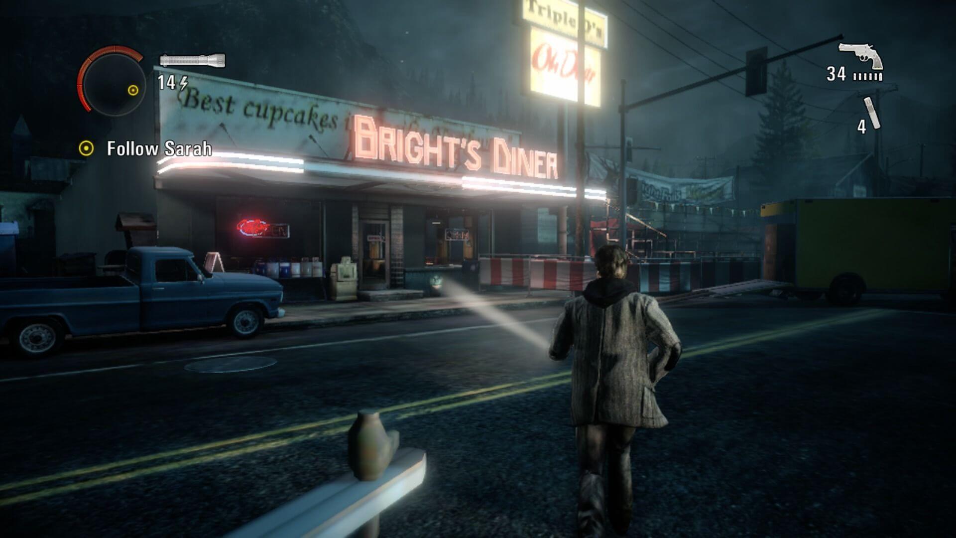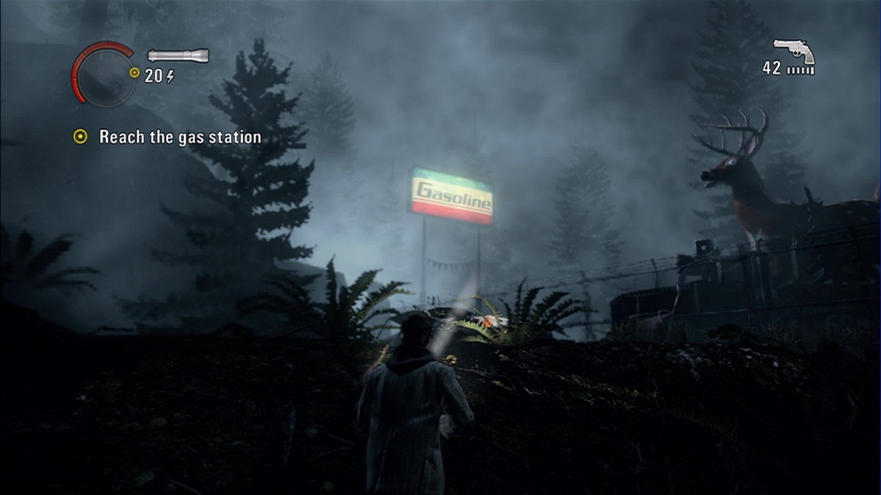 Геймплей Alan Wake — это гениальное сочетание атмосферного хоррора и экшен-шутера с уникальной механикой. Тьма здесь — не просто отсутствие света, а активная, агрессивная сила. Чтобы нанести урон врагу, сначала нужно «разрушить» его темную броню лучом фонарика, и только потом можно стрелять. Но аккумулятор вашего фонаря не вечен, так что придется постоянно искать батарейки, лампочки и другие источники света, превращая каждую битву в напряженную стратегическую головоломку. Вы будете бегать по лесам, дорогам и заброшенным домам Брайт-Фоллса, вооружившись не только оружием, но и страницами своего же собственного мистического романа, которые дают подсказки и открывают новые возможности. Это как если бы Стивен Кинг внезапно оказался внутри одного из своих самых жутких рассказов и ему пришлось бы сражаться с монстрами из «Оно» при помощи карманного фонарика и револьвера. И да, местные жители тоже не подарок — от эксцентричного шерифа до загадочной старушки, все они добавляют в историю свою лепту странности.