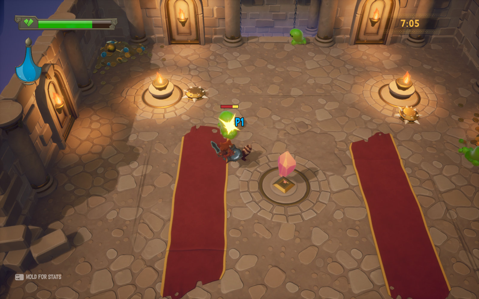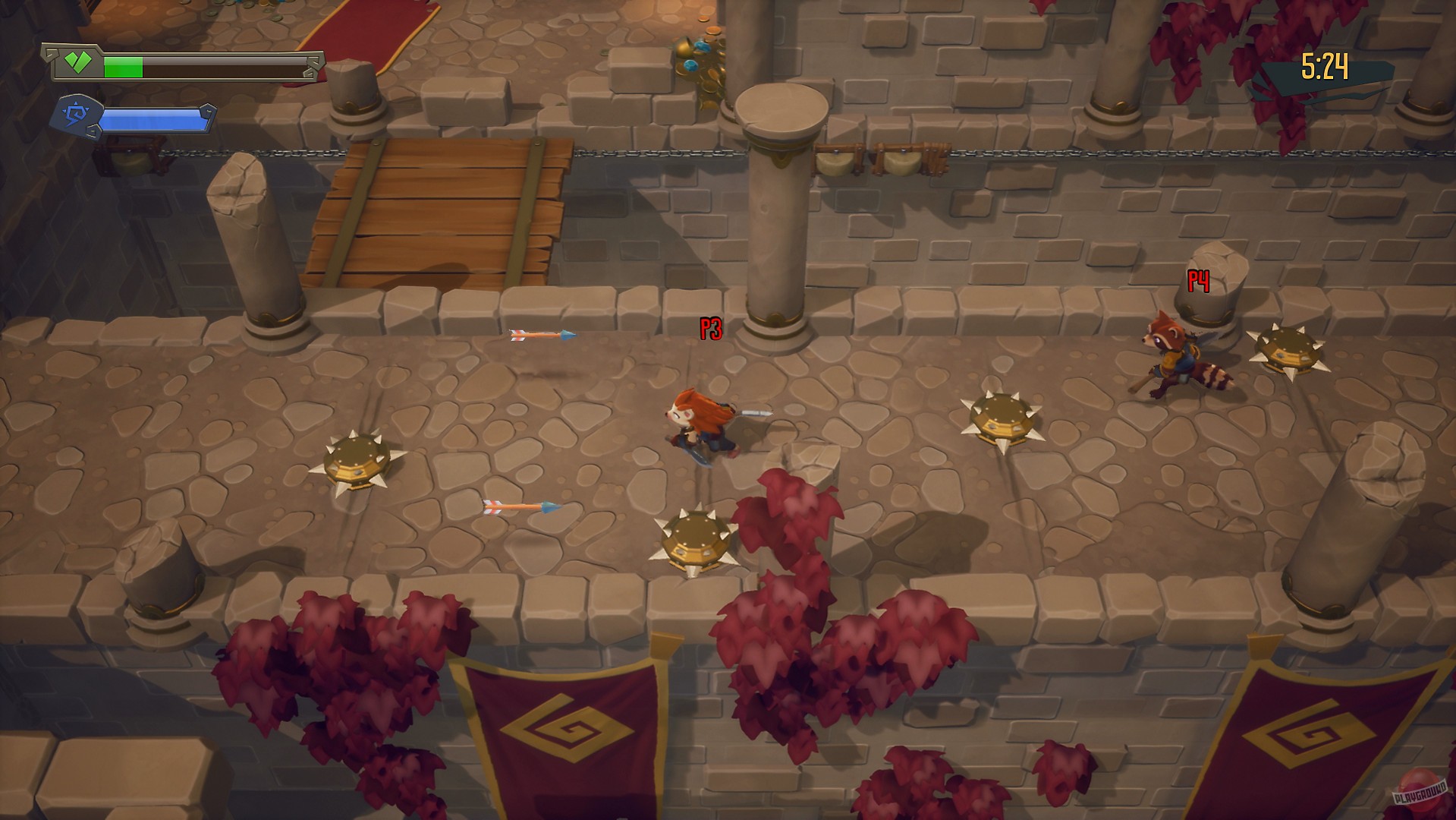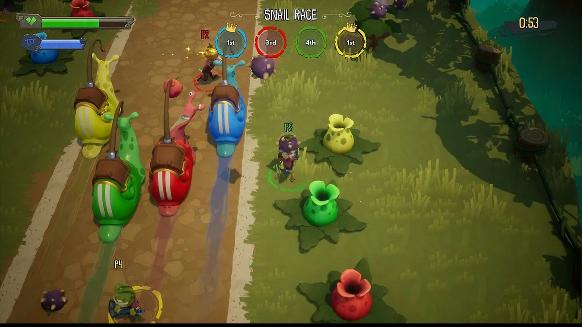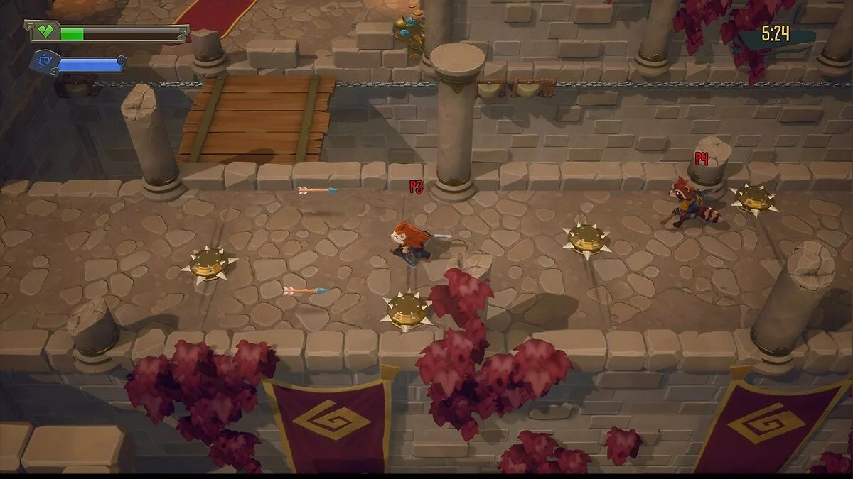 ReadySet Heroes - это аркадный экшен, в котором игроки зачищают подземелья, уничтожая монстров, обходя многочисленные ловушки и собирая уникальное снаряжение. Этим занимается одновременно две команды, и побеждает та, которая доберется до выхода из подземелья.