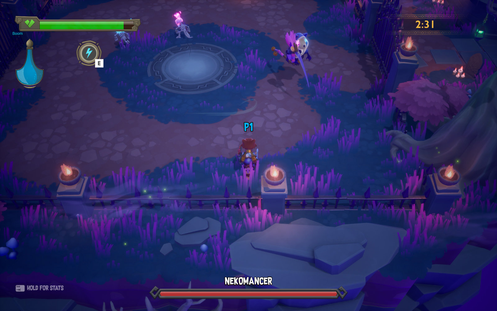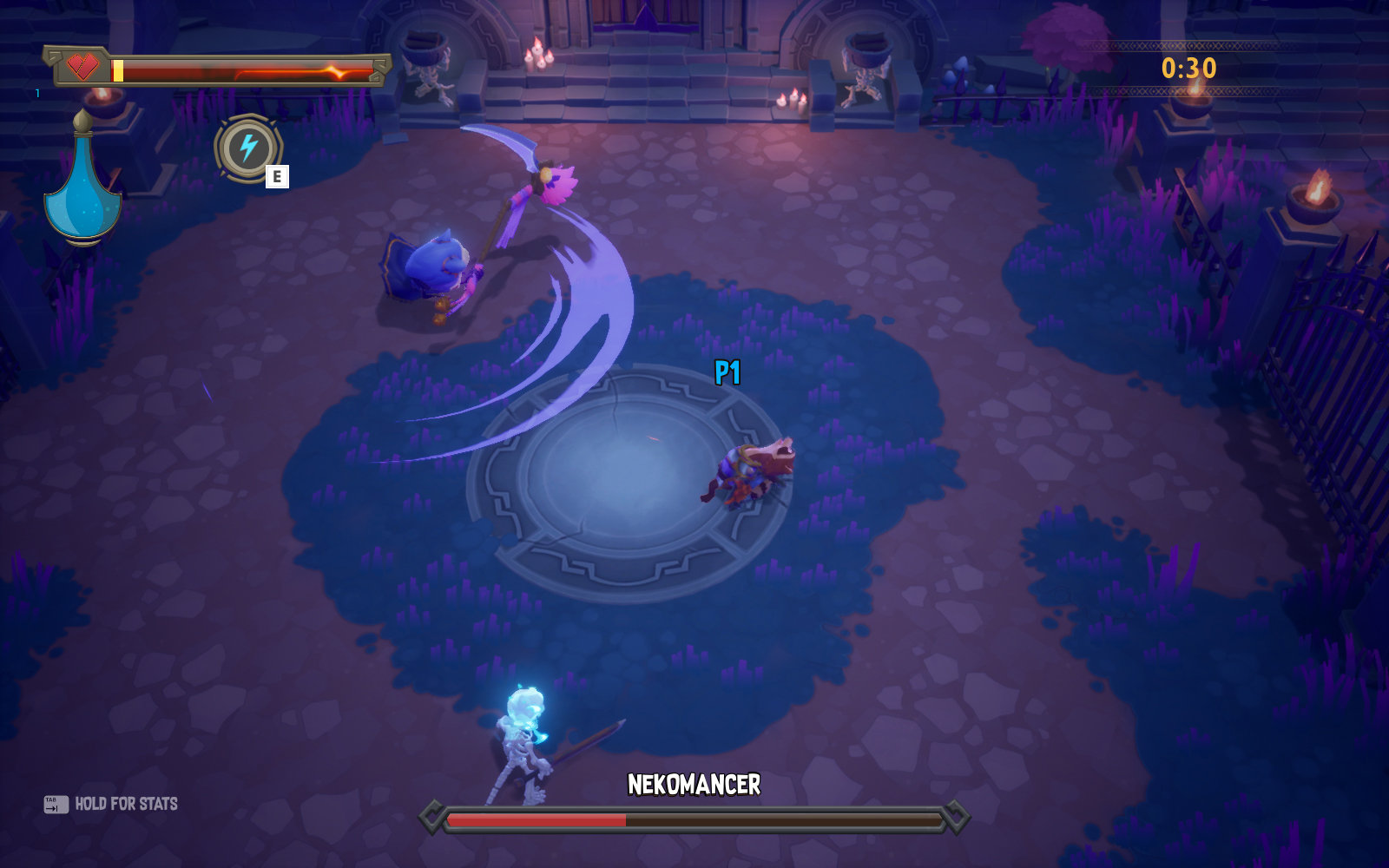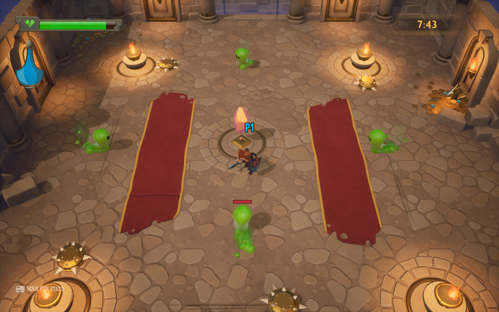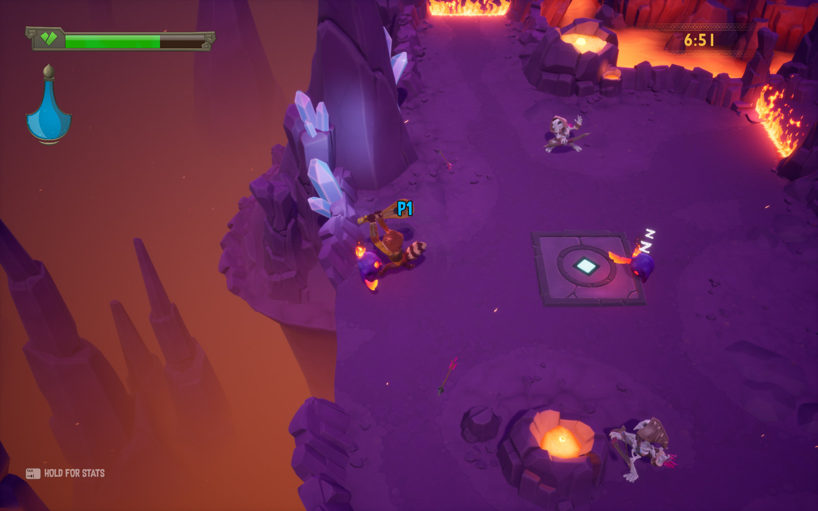 ReadySet Heroes - это аркадный экшен, в котором игроки зачищают подземелья, уничтожая монстров, обходя многочисленные ловушки и собирая уникальное снаряжение. Этим занимается одновременно две команды, и побеждает та, которая доберется до выхода из подземелья.