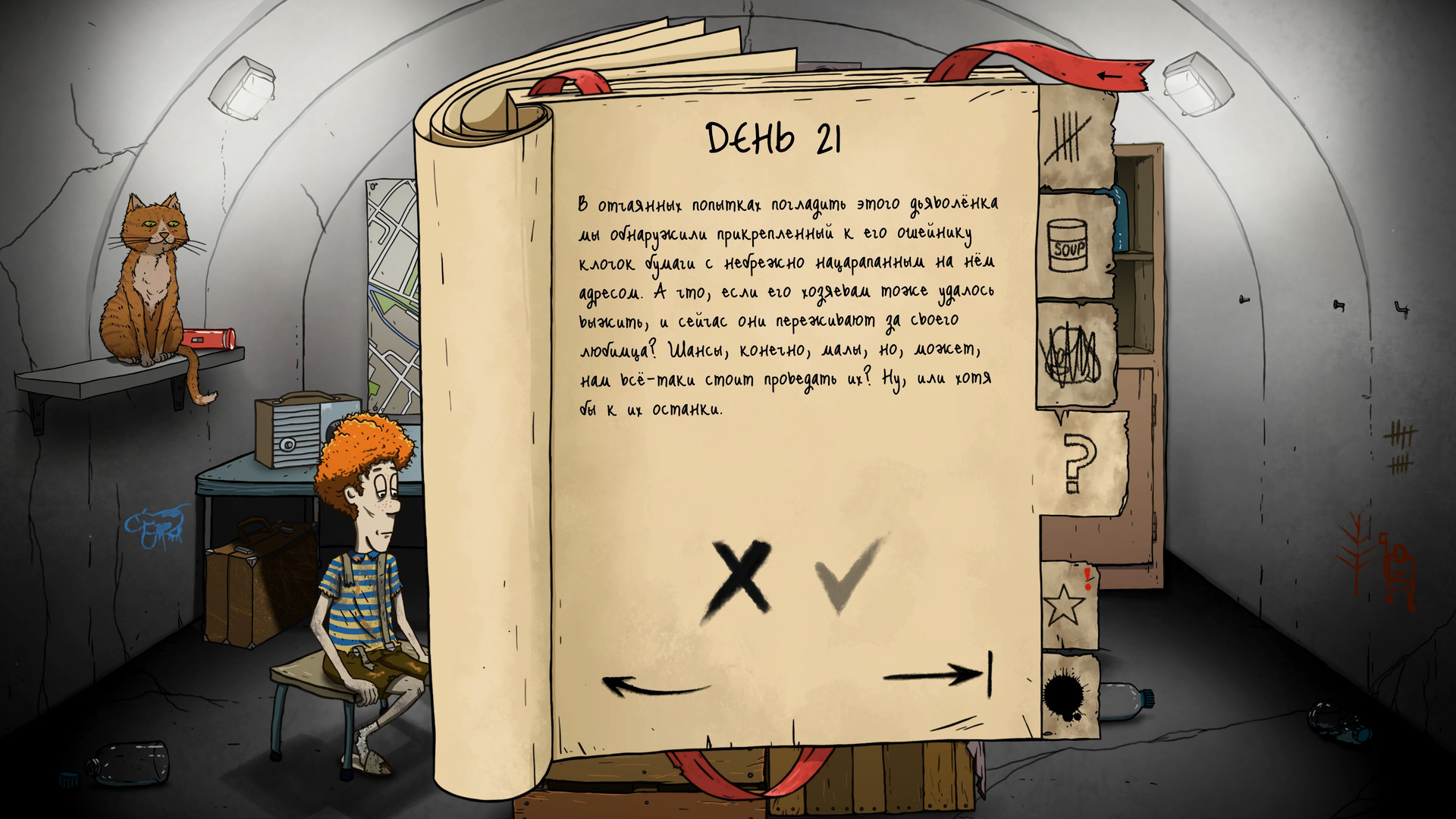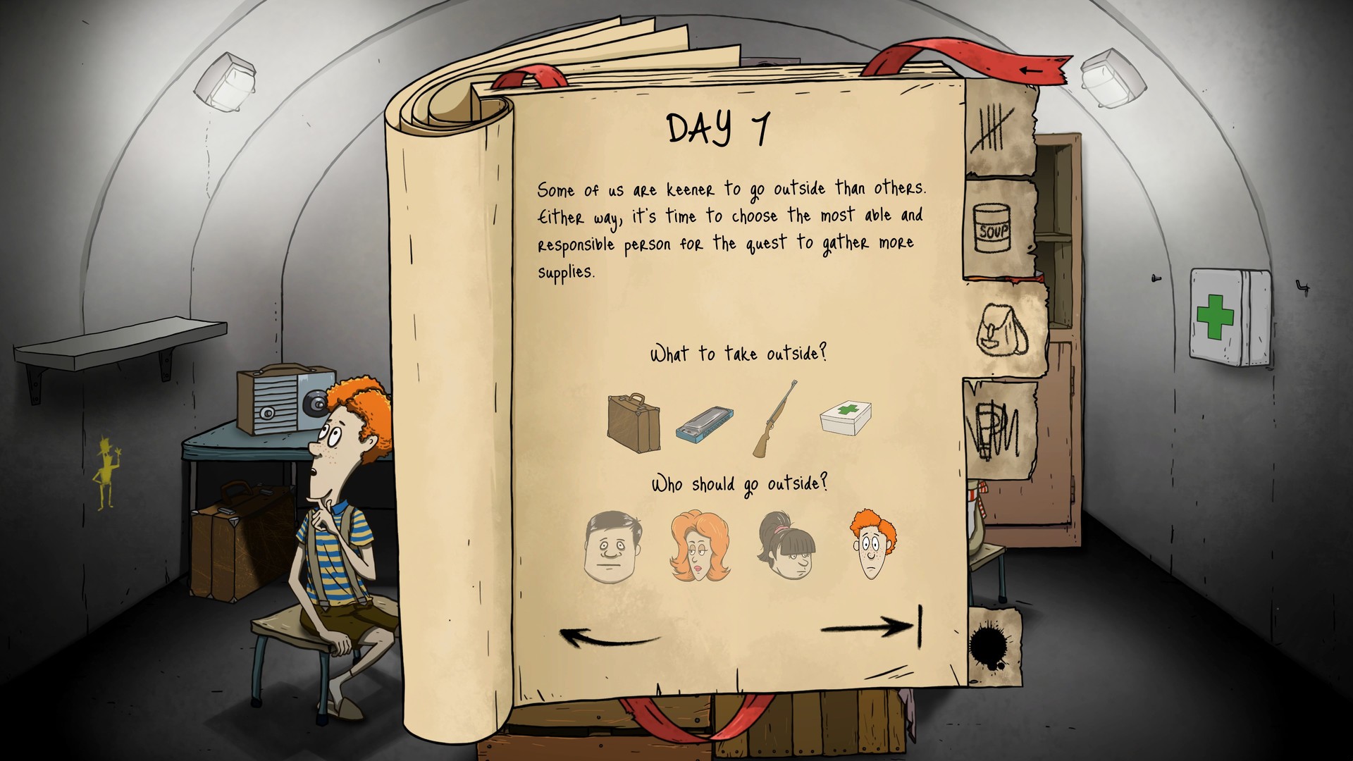 Геймплей 60 Seconds! разделён на два напряжённых этапа. Сначала — безумный рывок по хаотично генерируемому дому, где вы, как сумасшедший Санта-Клаус, хватаете всё подряд: лопату, йод, детскую игрушку и даже портрет тёти Гертруды (вдруг пригодится для морального духа?). А потом — долгие, томительные дни в тесном бункере, где начинается настоящая драма. Кто пойдёт на поверхность за припасами? Кто получит последнюю тушёнку? А что делать, если ваша дочь Тимми нашла странную карту, а сын Мэри — загадочный артефакт? Каждое ваше решение влияет на сюжет, отношения между персонажами и, конечно же, на их шансы на выживание. И да, будьте готовы к тому, что ваша «идеальная» семья может превратиться в сборник анекдотов о том, как не надо выживать после ядерного апокалипсиса.