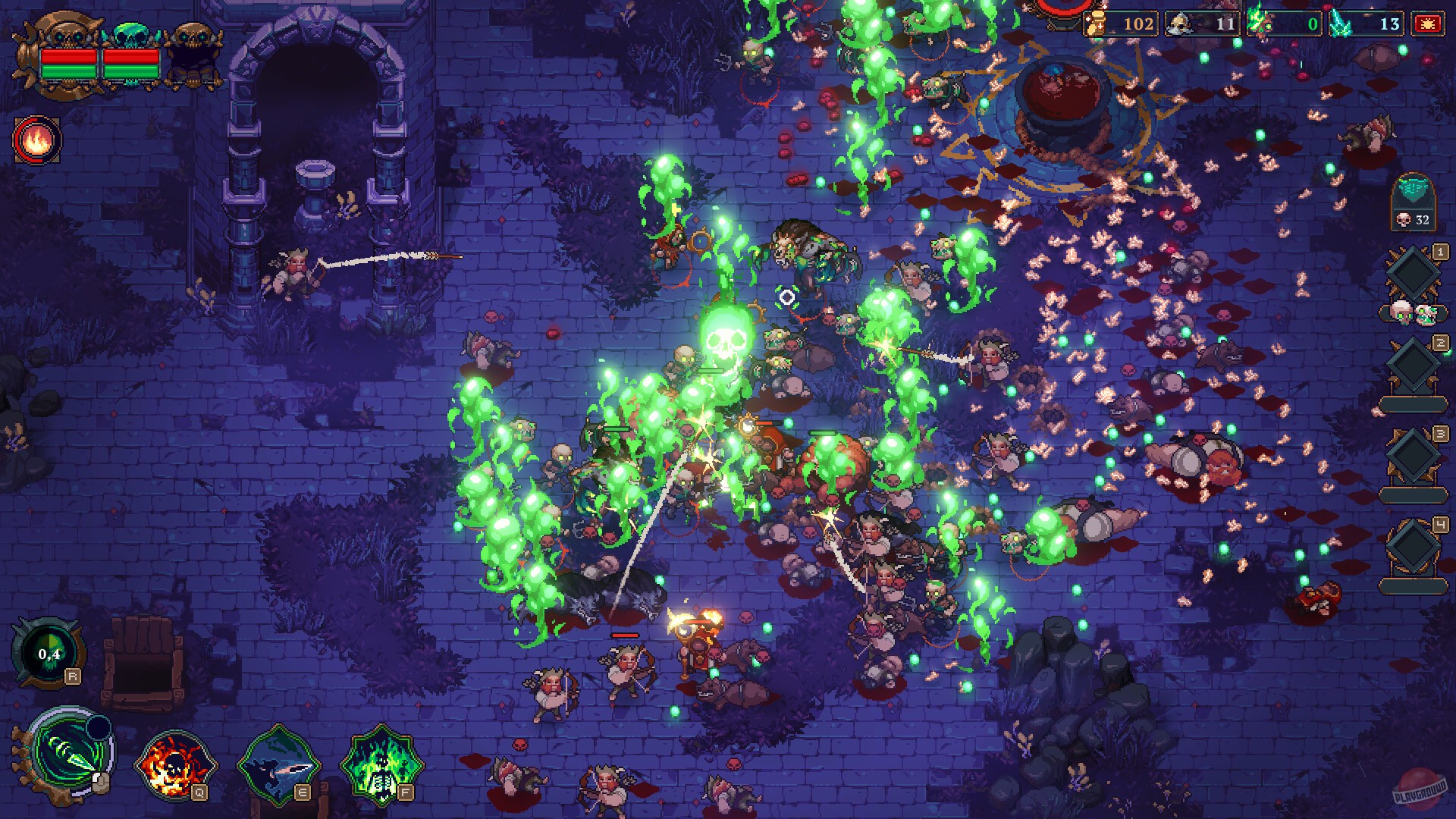 Геймплей The Unliving — это идеальный баланс между стратегическим планированием и безумной магической вакханалией. Вы начинаете свой путь на кладбище (где же еще?), с парой заклинаний и горсткой скелетов, а заканчиваете тем, что ведете целую орду неживых воинов против городов и уникальных боссов. Каждый поверженный враг становится новой единицей в вашей армии, так что чем больше вы убиваете, тем мощнее становитесь. Это как пирамида Мавзолея, только вместо камней — кости. Система прокачки и сотни уникальных артефактов позволяют создавать десятки различных билдов, превращая вашего Некроманта то в дальнобойного мастера черной магии, то в настоящего танка, окруженного щитом из своих же подчиненных.