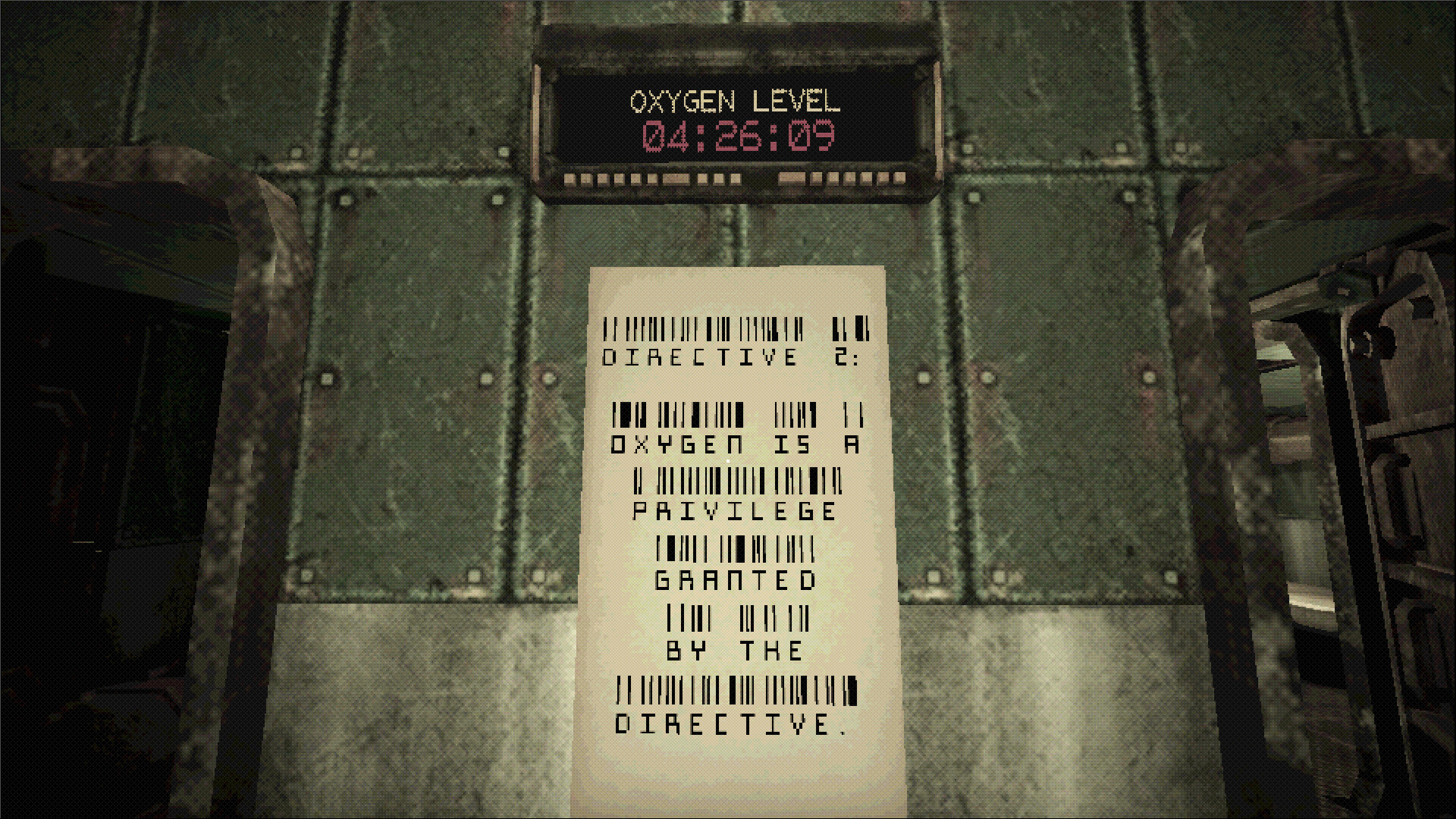 Короткая хоррор-игра. Вы сидите в подводной лодке на дне океана и добываете нефть. При этом над вами висит таинственный голос, который даёт приказы, а если не выполните норму — просто отключит кислород. То есть ситуация здесь такая: загнали вас в субмарину работать на корпорацию. Видимость почти никакая, поэтому ориентироваться приходится по приборам — датчики, мониторы, всякие индикаторы. По морскому дну ползать нужно осторожно, стараясь высматривать подходящие места для бурения.