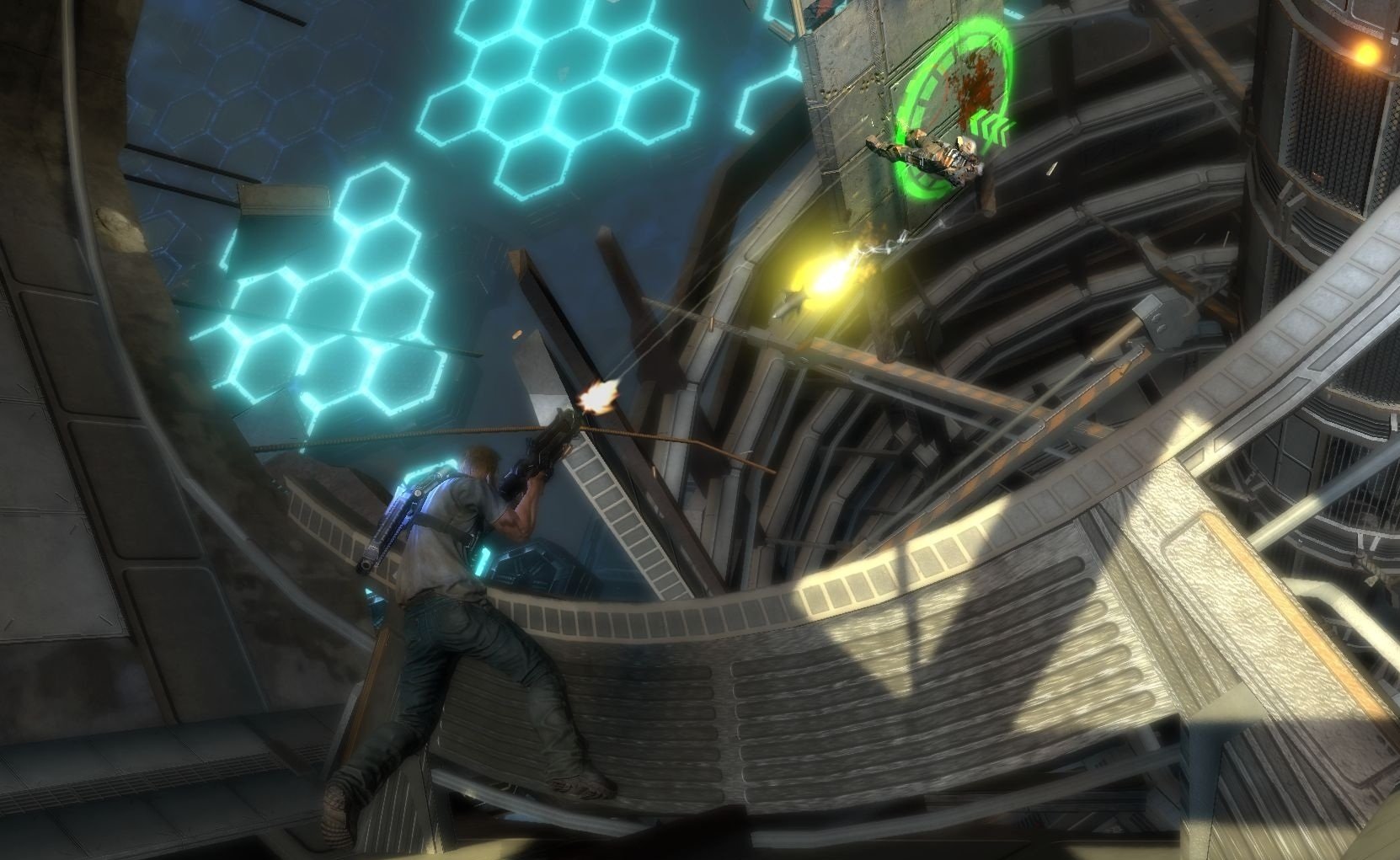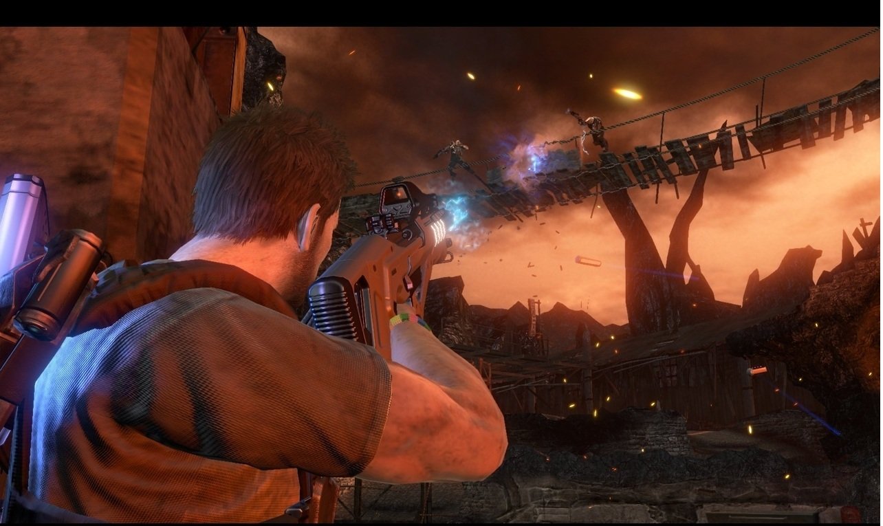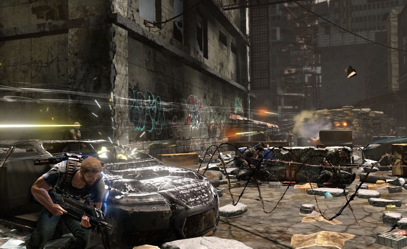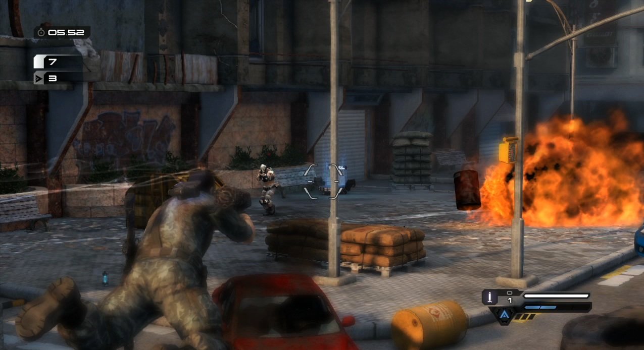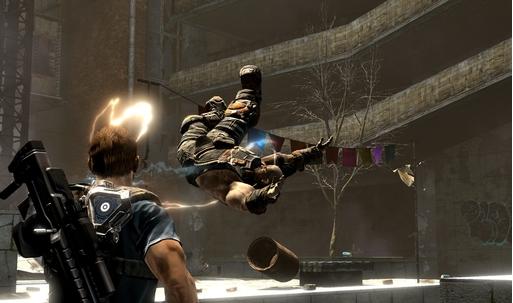 Вы в роли Дэвида Рассела, обычного полицейского с необычной миссией: спасти свою дочь из лап инопланетных захватчиков, которые, видимо, решили, что наша планета — идеальное место для своих гравитационных экспериментов. Ваш верный напарник — Лео Делгадо, который либо будет вашим другом в кооперативном режиме (отличный повод позвать приятеля и вместе попробовать не свихнуться от постоянных переворотов мира), либо вашим надёжным ИИ-напарником, если вы предпочитаете одиночные подвиги. Главное оружие в вашем арсенале — не только мощный арсенал стволов, но и уникальный гравитационный крюк Grappler. С его помощью вы сможете не только хватать врагов из-за укрытий, словно Дарт Вейдер, но и создавать собственные укрытия на лету, поднимая в воздух всё, что плохо лежит: от мусорных баков до целых автобусов. Разрушаемое окружение добавляет хаоса: сегодня ваше укрытие — это стена, а завтра от неё останется лишь пыль, и вам придётся искать новое, пока вас не придавило к потолку (или к полу, или к стене — чёрт возьми, где он вообще сейчас?!).