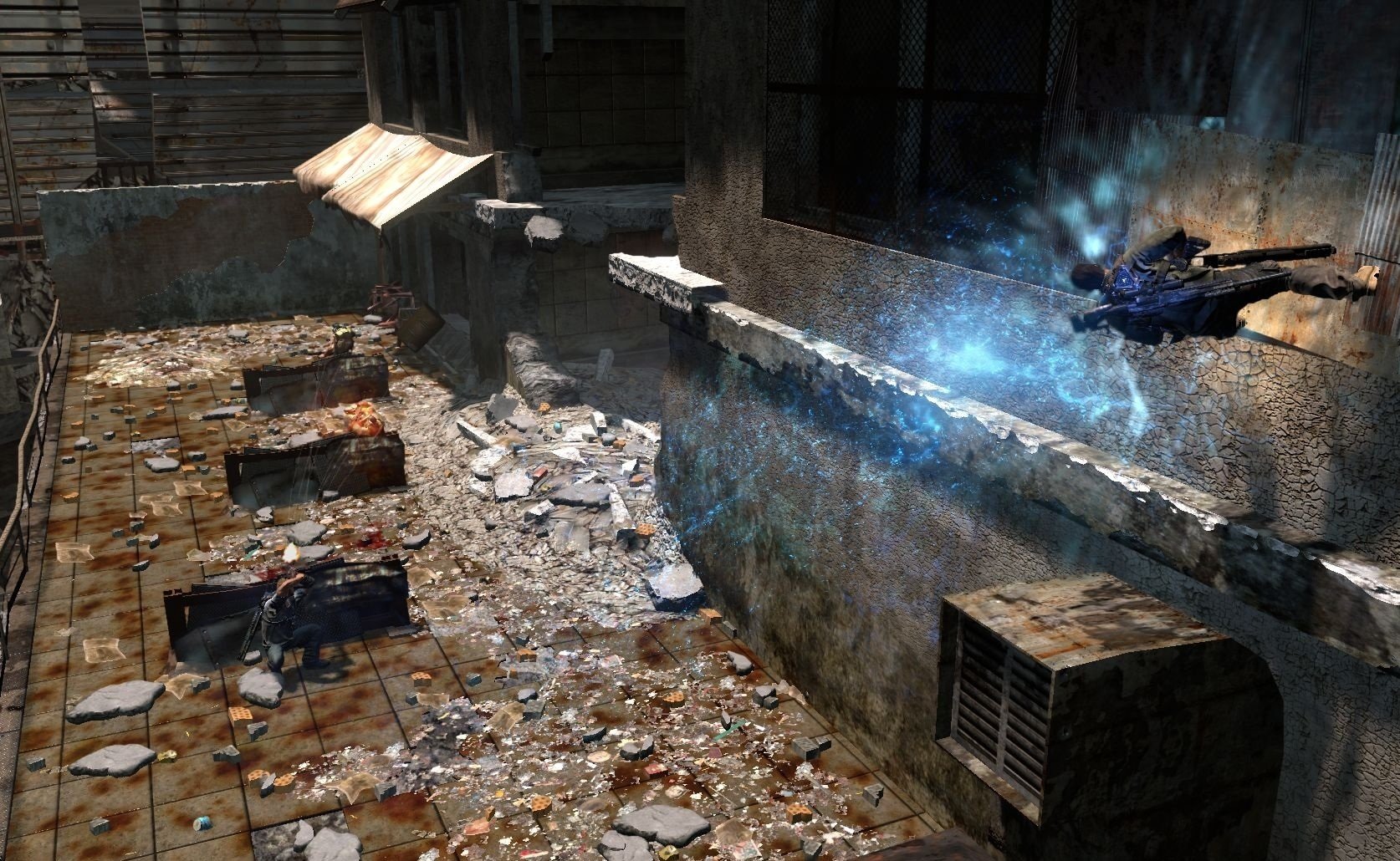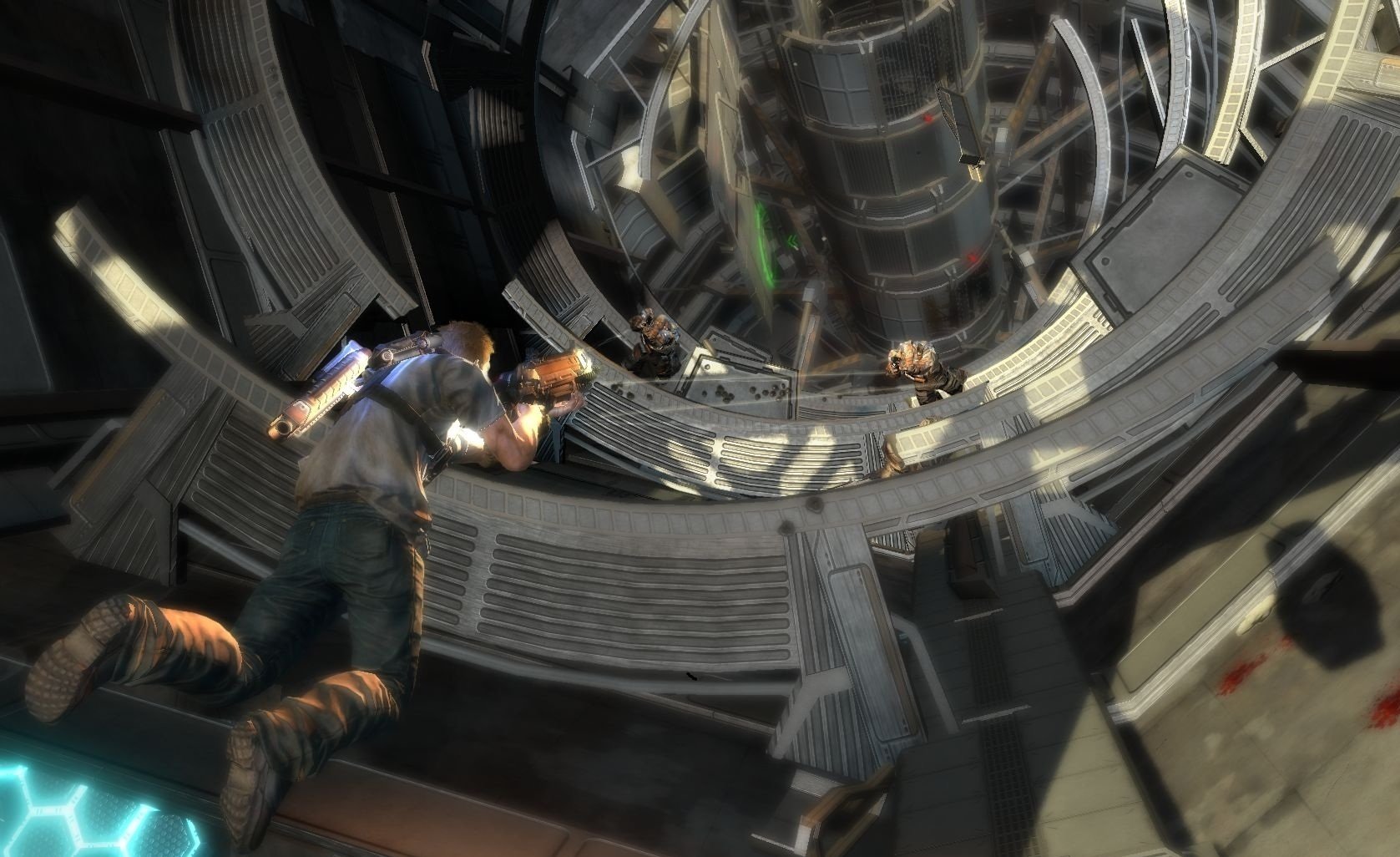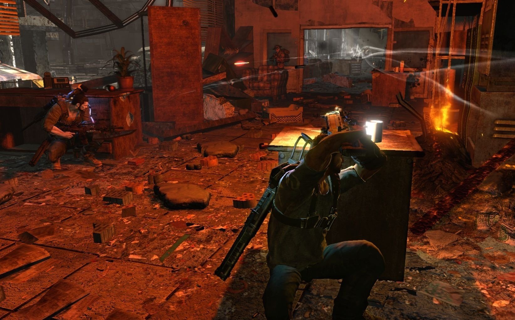 Вы в роли Дэвида Рассела, обычного полицейского с необычной миссией: спасти свою дочь из лап инопланетных захватчиков, которые, видимо, решили, что наша планета — идеальное место для своих гравитационных экспериментов. Ваш верный напарник — Лео Делгадо, который либо будет вашим другом в кооперативном режиме (отличный повод позвать приятеля и вместе попробовать не свихнуться от постоянных переворотов мира), либо вашим надёжным ИИ-напарником, если вы предпочитаете одиночные подвиги. Главное оружие в вашем арсенале — не только мощный арсенал стволов, но и уникальный гравитационный крюк Grappler. С его помощью вы сможете не только хватать врагов из-за укрытий, словно Дарт Вейдер, но и создавать собственные укрытия на лету, поднимая в воздух всё, что плохо лежит: от мусорных баков до целых автобусов. Разрушаемое окружение добавляет хаоса: сегодня ваше укрытие — это стена, а завтра от неё останется лишь пыль, и вам придётся искать новое, пока вас не придавило к потолку (или к полу, или к стене — чёрт возьми, где он вообще сейчас?!).