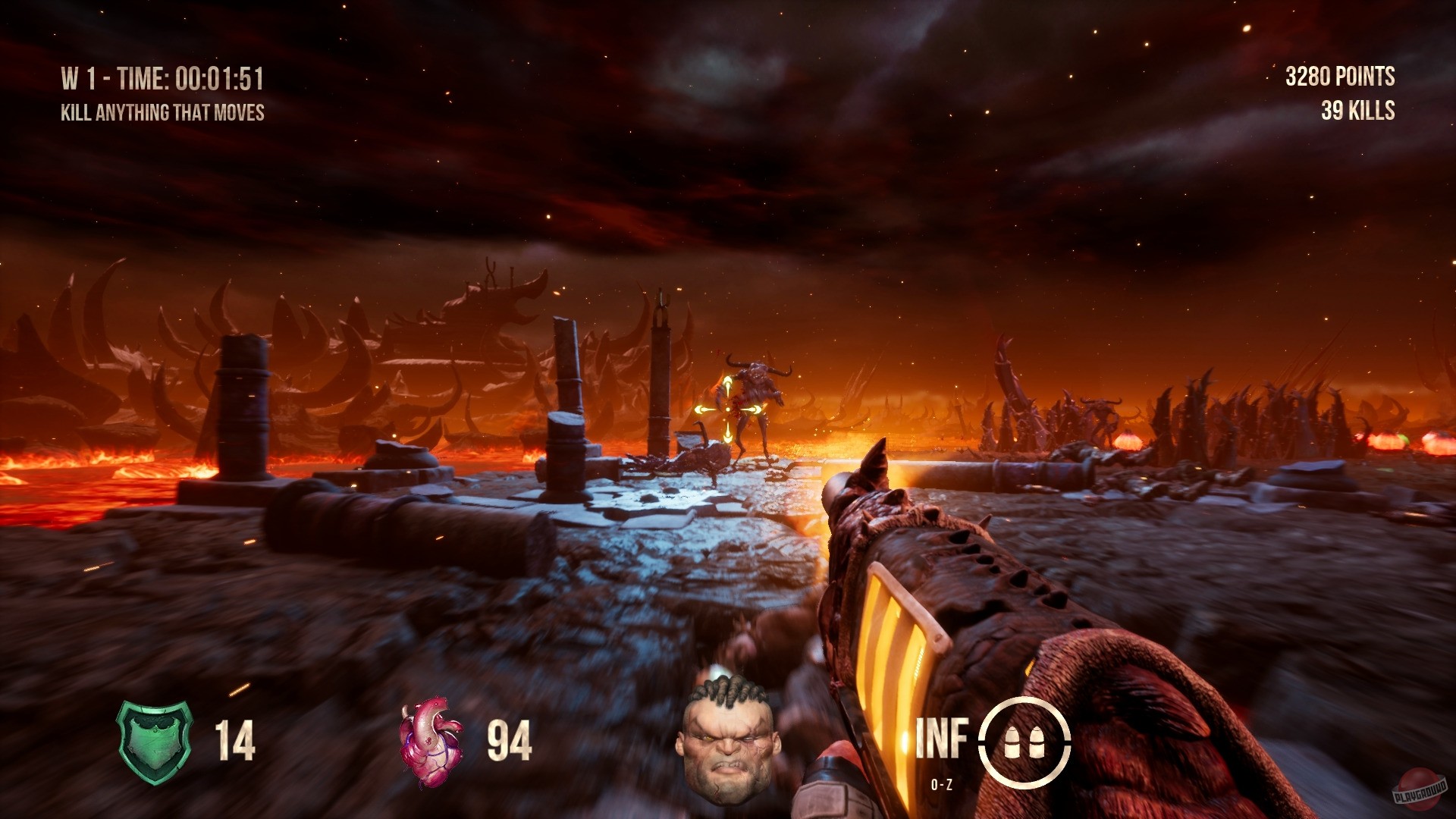 Вас ждет стремительный и агрессивный геймплей, где стоять на месте — верная смерть. Вы будете нести свою кару через 18 уровней, наполненных ордами демонов, ловушками и секретами, спрятанными в самых неожиданных местах. В вашем распоряжении пять видов уникального оружия, каждое из которых — это инструмент для создания живописных сцен разрушения. От классического дробовика, который отправляет врагов в перерод (буквально!), до более экзотических игрушек, способных испепелить целую группу монстров одним выстрелом. Геймплей Hellbound построен на простом, но эффективном принципе: see monster, shoot monster, collect health and ammo, repeat until hell is empty. Это чистый, нефильтрованный экшен, который не утомляет моральными дилеммами, а просто дает вам возможность стать настоящим адским уборщиком.