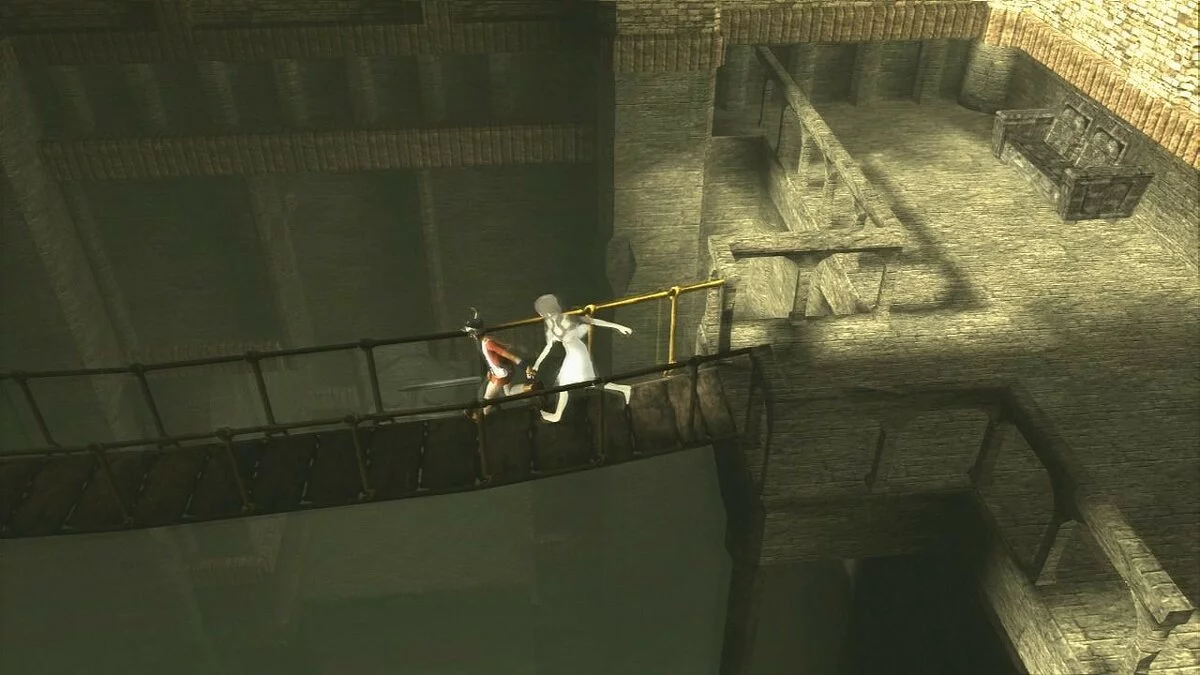 Геймплей Ico — это гениальное сочетание головоломок, платформинга и элементов экшена. Ваша главная задача — не просто найти выход, а буквально вести Йорду за руку через весь этот мрачный мир. Вы будете помогать ей взбираться по лестницам, подтягивать её на уступы и решать хитроумные головоломки, которые открываются только тогда, когда вы оба стоите рядом на нужных плитах. Но расслабляться не стоит! Из темноты на вас будут нападать зловещие Тени — призрачные создания, желающие утащить Йорду обратно в плен. Вам придётся отбиваться от них с помощью палки или меча, но помните: если Йорда будет схвачена, игра может закончиться очень быстро. Это не просто игра, это настоящая проверка на ответственность и командную работу — вы ведь не можете просто бросить свою спутницу и убежать вперёд, как герой из типичного боевика.