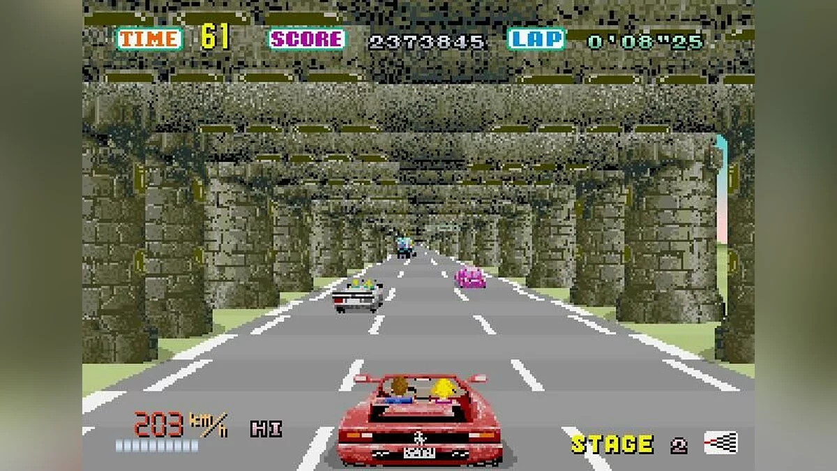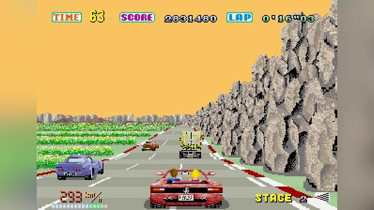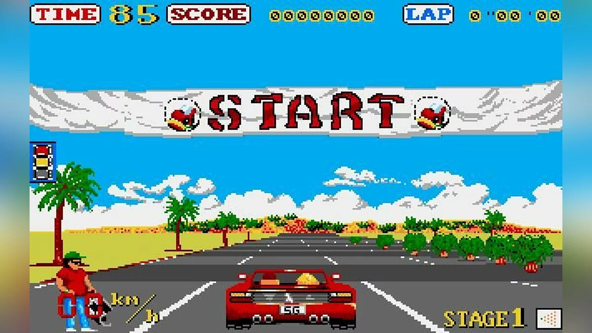 Забудьте про пробки и скучные поездки на работу! В Out Run вас ждёт самое стильное и беззаботное путешествие в истории видеоигр. Представьте: вы за рулём культового Ferrari Testarossa, рядом — светловолосая красотка, а за окном пролетают пальмы, горы и бескрайние пляжи. Это не просто гоночная игра 1986 года от гения Ю Судзуки и студии Sega-AM2, это настоящий симулятор идеального летнего отпуска! Вам не нужно гнаться за призами или крушить соперников; ваша цель — просто наслаждаться дорогой, чувствовать ветер в волосах (или в пиксельной шевелюре) и добраться до одной из пяти конечных точек маршрута. И да, если вы думали, что выбор пути в играх изобрели в XXI веке, то Out Run с её развилками на каждой контрольной точке скромно улыбнётся вам своей ретро-мудростью.