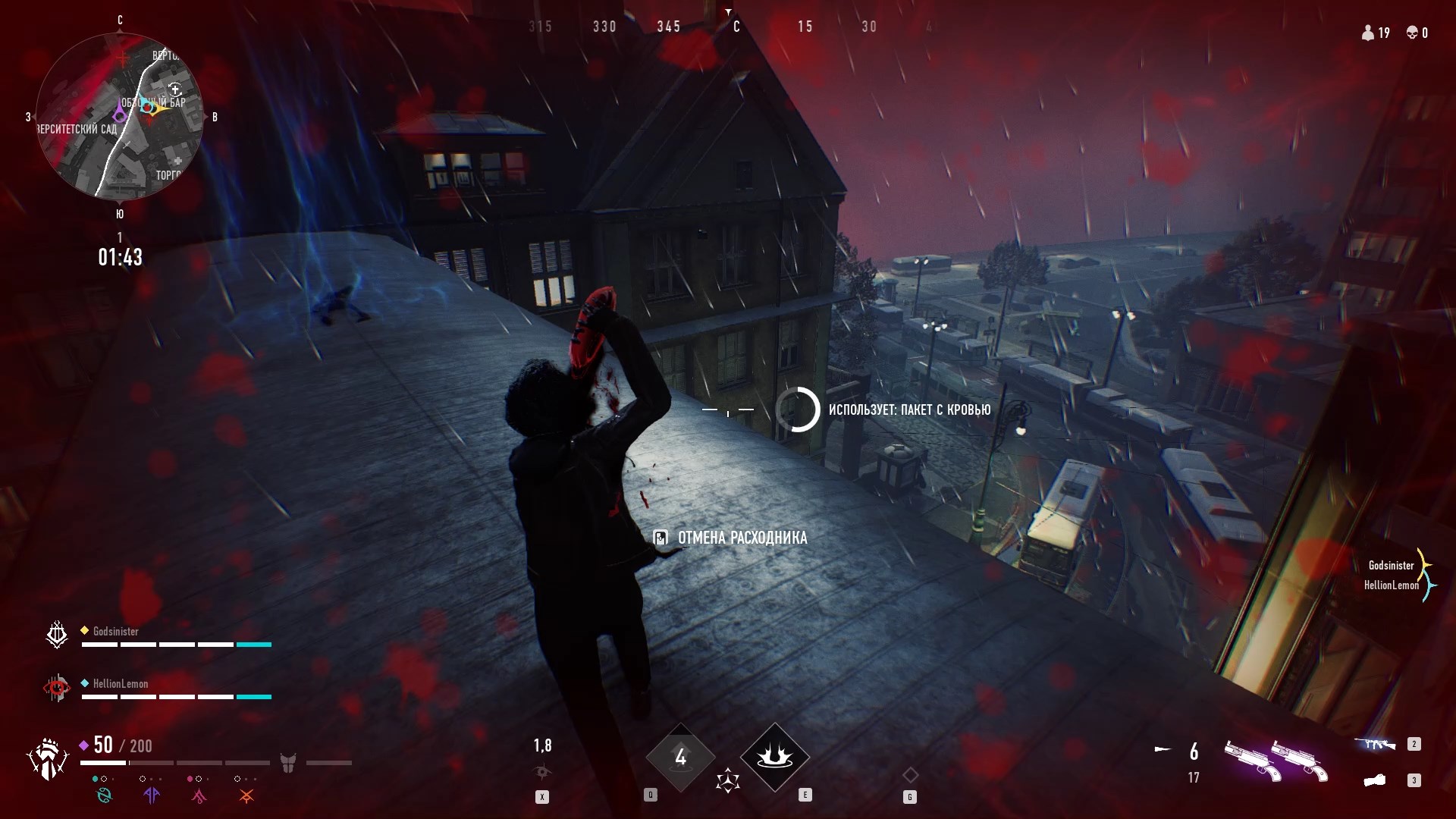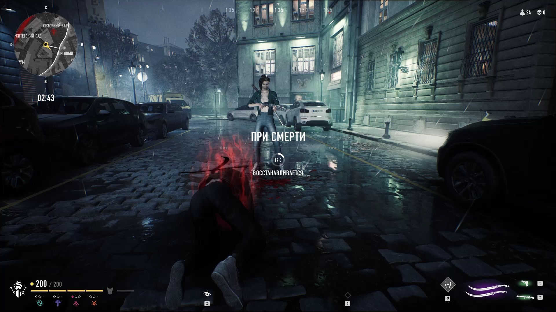 Vampire: The Masquerade — Bloodhunt — бесплатный экшен в жанре «королевская битва» от 3-го лица во вселенной Vampire: The Masquerade. 45 игрокам предстоит сражаться друг с другом (соло или в пати по 3 человека) на улицах Праги, пока не останется последний выживший. На выбор предоставляется 6 героев из 3 кланов (Бруха, Носферату, Тореадор), каждый из которых обладает своими сильными сторонами и уникальными навыками. Помимо сверхъестественных способностей на уровне можно найти оружие дальнего и ближнего боя, аптечки, бронежилет и другие полезные средства. Для восстановления здоровья и получения бонусов к умениям или характеристикам нужно высасывать кровь из гражданских на улицах. Однако это стоит делать заметно: если вас увидят, то ваше местоположение выдастся на некоторое время противникам. Если после смертельного ранения, вы сможете продержаться 20 секунд, то ваш персонаж возродится.
