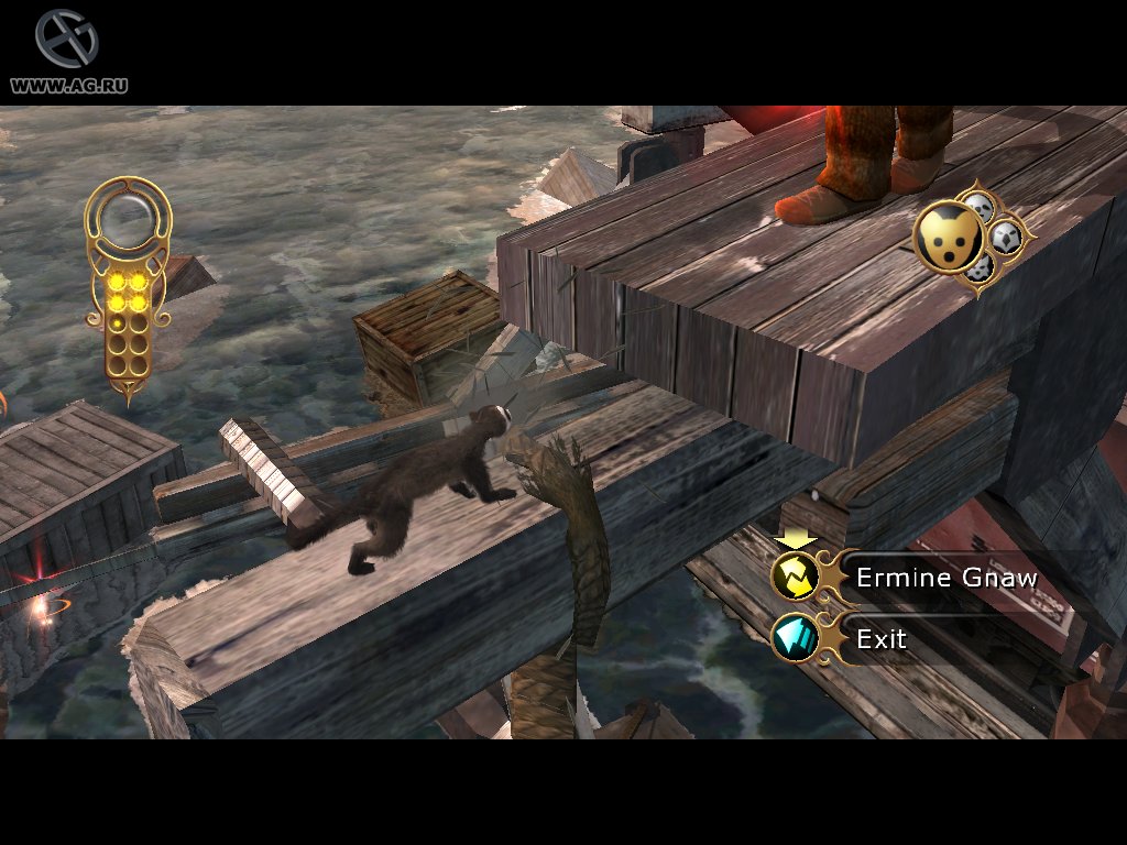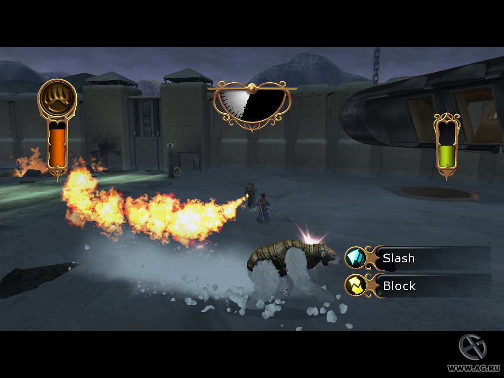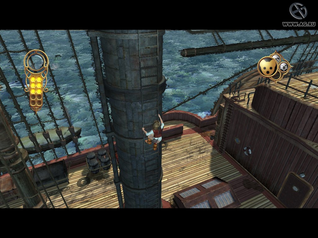 The Golden Compass — это классический экшен-адвенчура с элементами головоломок и стелса, созданный для тех, кто любит исследовать миры и следовать за сюжетом. Вы будете путешествовать по знаковым локациям из фильма: побываете в Оксфорде, заглянете на борт цыганского корабля и даже рискнете жизнью в ледяных пустошах Севера. Геймплей строится на том, чтобы общаться с NPC, находить ключевые предметы и решать нехитрые, но атмосферные загадки. А еще у Лиры есть верный даймон Пан, который может менять свои обличья — от совы до рыси — чтобы помочь вам преодолеть препятствия. Нужно прыгнуть выше? Пан превратится в кошку. Нужно что-то достать издалека? Сова уже в деле! Это как иметь собственного питомца-супергероя, только без подписки на корм.