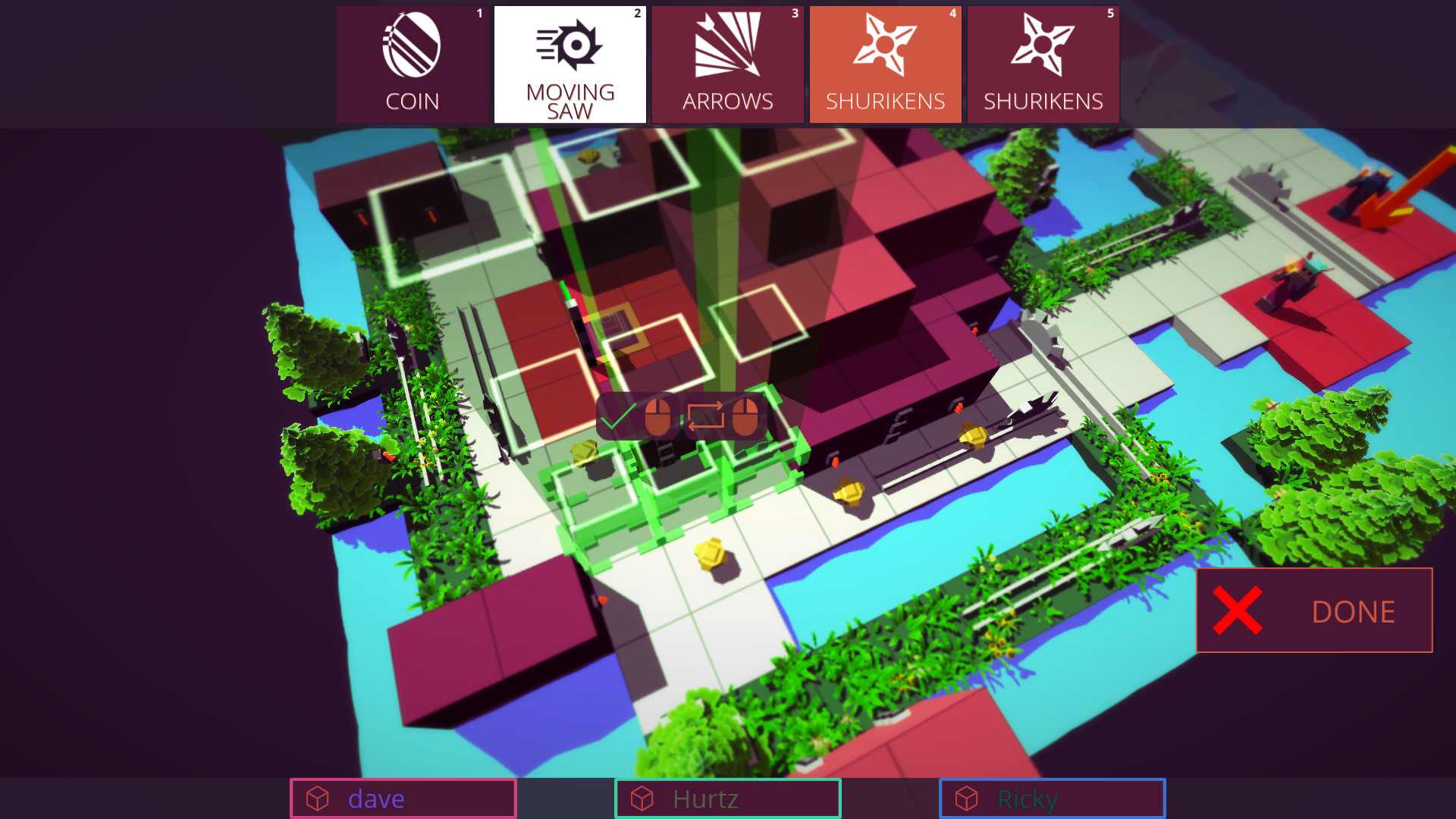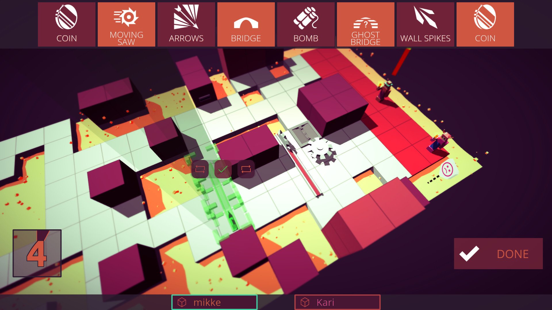 Забудьте про мирные посиделки за настольными играми! В Trapper's Delight ваша дружба проверяется на прочность самым изощрённым образом. Это не просто весёлая party-игра для компании, а настоящая арена для коварных инженеров-ловушечников и отчаянных искателей монеток. Представьте себе: вы с друзьями (до 4 игроков) собираетесь вместе, чтобы создать самый безумный, смертоносный лабиринт, напичканный пружинами, пилами, ямами и всем, что только может прийти в голову злобному гению. А потом... потом вы все бросаетесь в этот хаос, пытаясь первыми добраться до заветного флага на другой стороне карты, собирая по пути золотые монетки. Звучит как идеальный план для вечеринки? Ещё бы!
