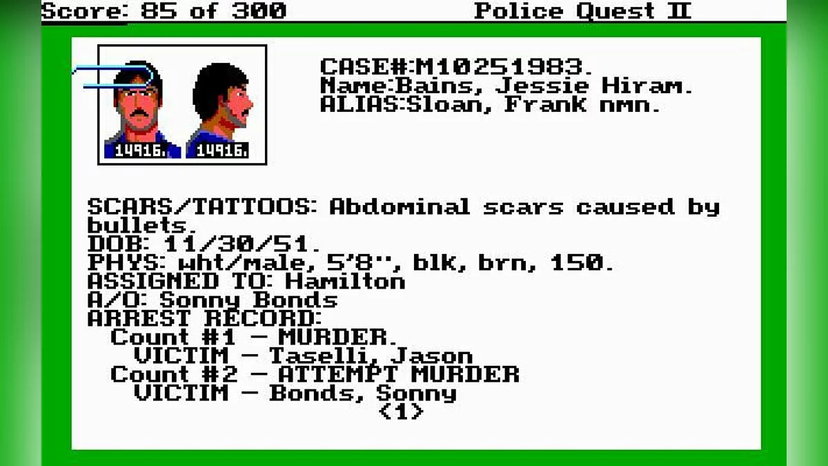 Police Quest 2: The Vengeance — это приключение с видом от третьего лица от студии Sierra On-Line, Inc.. Основным издателем игры является Sierra On-Line, Inc.. PQ2 — это альтернативное название Police Quest 2: The Vengeance.