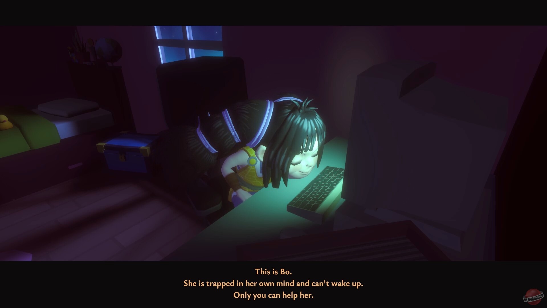 В Sleembo вы управляете девушкой по имени Бо, которая застряла в собственном сне и почему-то не может проснуться. Вместо привычного платформера, разработчики решили поэкспериментировать с рэгдолл-физикой, из-за чего наша героиня болтается в воздухе как тряпичная кукла. Ваша задача — направлять её мимо препятствий в бесконечном падении, собирать какие-то фрагменты и искать так называемые «порталы пробуждения».