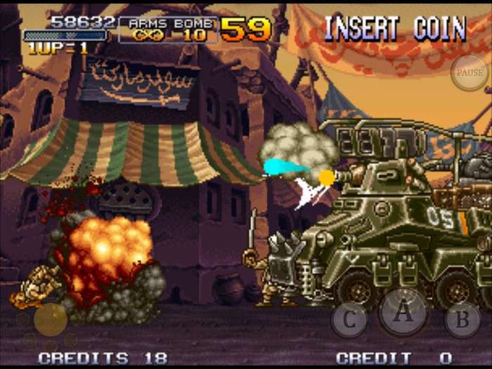 Геймплей Metal Slug X — это чистый, неразбавленный экшен, который заставит ваше сердце биться чаще, чем у зайца на трассе Формулы-1. Выбирайте одного из двух отчаянных бойцов элитного отряда «Пунго» и отправляйтесь в одиночное или кооперативное приключение (да-да, можно позвать друга и вместе устроить настоящий фестиваль разрушений!). Вас ждут знакомые, но улучшенные уровни: от джунглей и пустынь до ледяных катакомб и инопланетных баз. А еще здесь появились два новых вида оружия — гусеничная ракетница Iron Lizard и мощнейший Heavy Machine Gun — которые превратят вас в ходячую арсенал-апокалипсис. И, конечно, нельзя не упомянуть легендарные боевые машины Metal Slug — эти милые, но смертоносные танки станут вашим лучшим другом в этом хаосе.