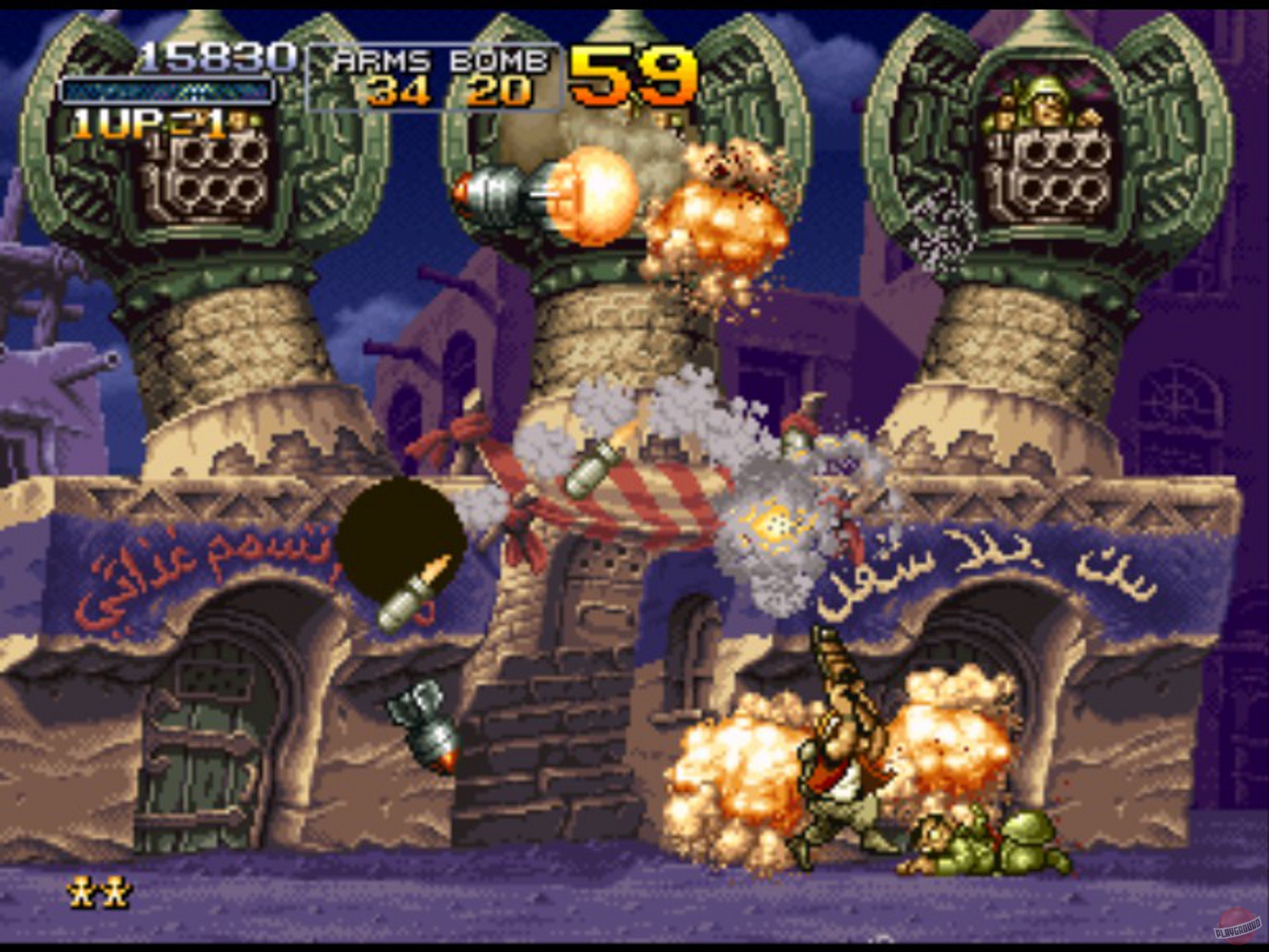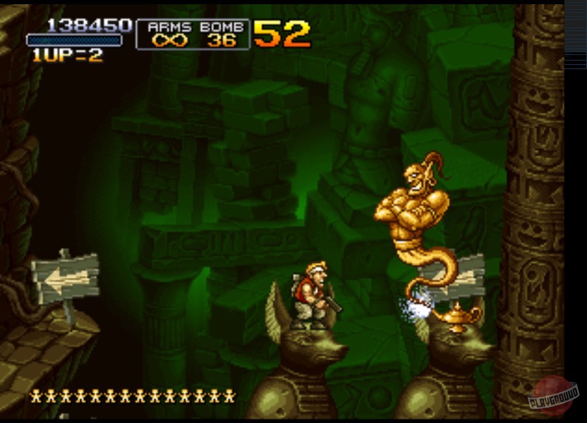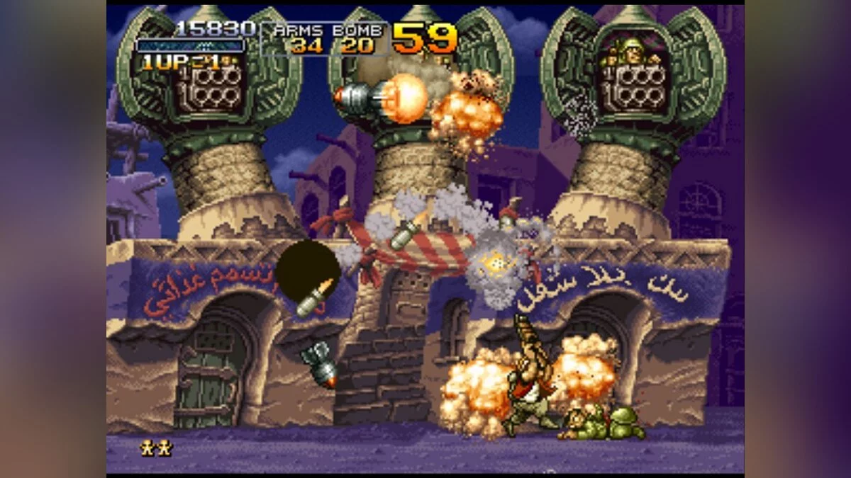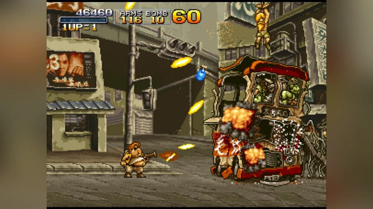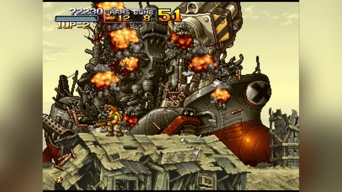 Особенности Metal Slug X — это не только исправленные баги и более плавный геймплей по сравнению с предшественником, но и потрясающая ручная анимация, которая до сих пор вызывает восхищение. Каждый спрайт, каждый взрыв и даже реакция врагов на попадание прорисованы с такой любовью и детализацией, что хочется просто стоять и любоваться, а не стрелять (хотя последнее, увы, необходимо). Игра — это идеальный пример того, как простота механик сочетается с безумной глубиной и юмором: от пленников в нижнем белье до врагов-зомби и огромных боссов, которые выглядят так, будто их придумал сумасшедший ученый после просмотра «Звездных войн» на ночь. Это must-play для всех фанатов ретро-игр, аркадных шутеров и тех, кто просто хочет хорошенько размять пальцы и получить массу положительных эмоций.
