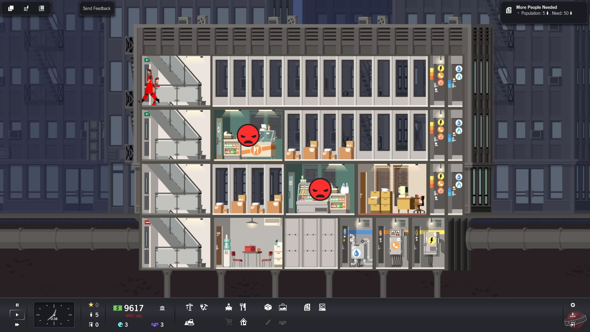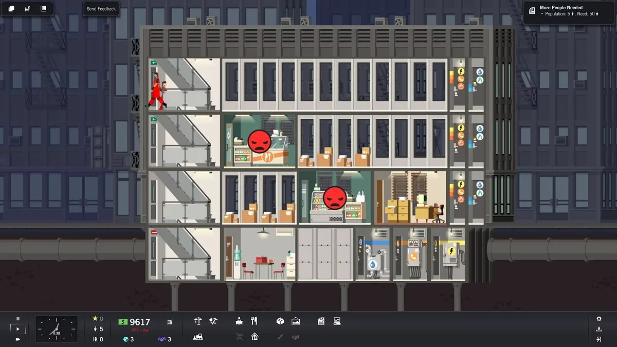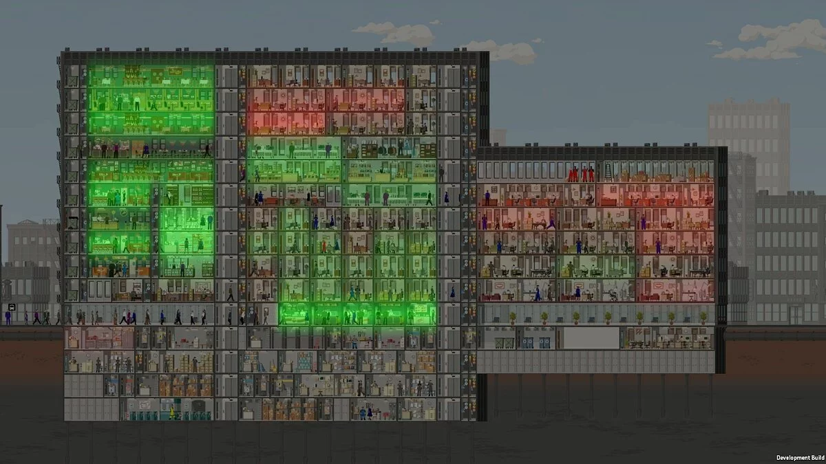 Project Highrise — это духовный наследник культовой SimTower, но с современным дизайном и куда более глубокой системой управления. Вы начинаете с пустого участка и нескольких миллионов в кармане (виртуальных, конечно), а заканчиваете... ну, на самом деле, вы никогда не заканчиваете! Ведь всегда можно добавить ещё один этаж с бассейном на крыше или заменить скучный магазин канцтоваров на экзотический спа-салон. Геймплей строится вокруг баланса: нужно продумывать инфраструктуру (лифты, электричество, вентиляция), подбирать правильный микс арендаторов (офисы, магазины, рестораны, жилые апартаменты), следить за их счастьем и, конечно же, считать прибыль. Не забывайте про исследование новых технологий и модернизацию старых помещений — ваш небоскрёб должен быть не только функциональным, но и стильным, чтобы затмить все другие здания в городе.