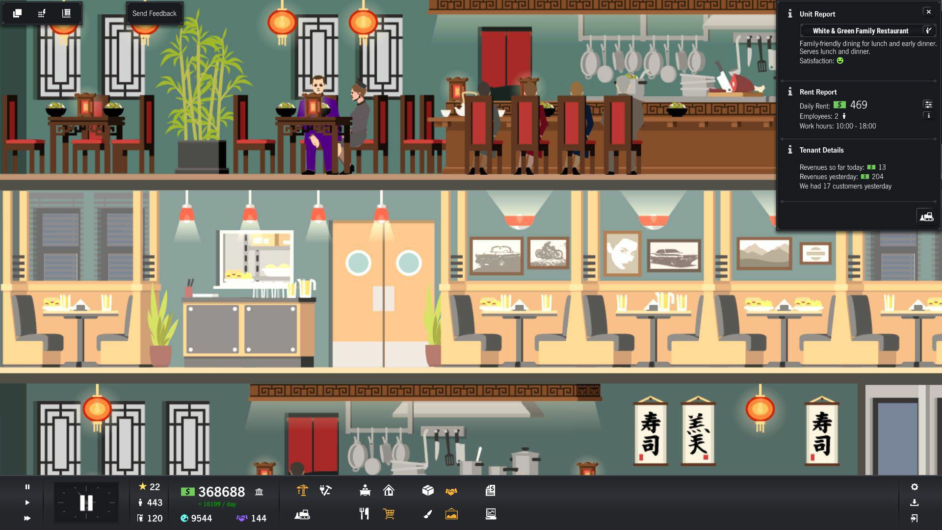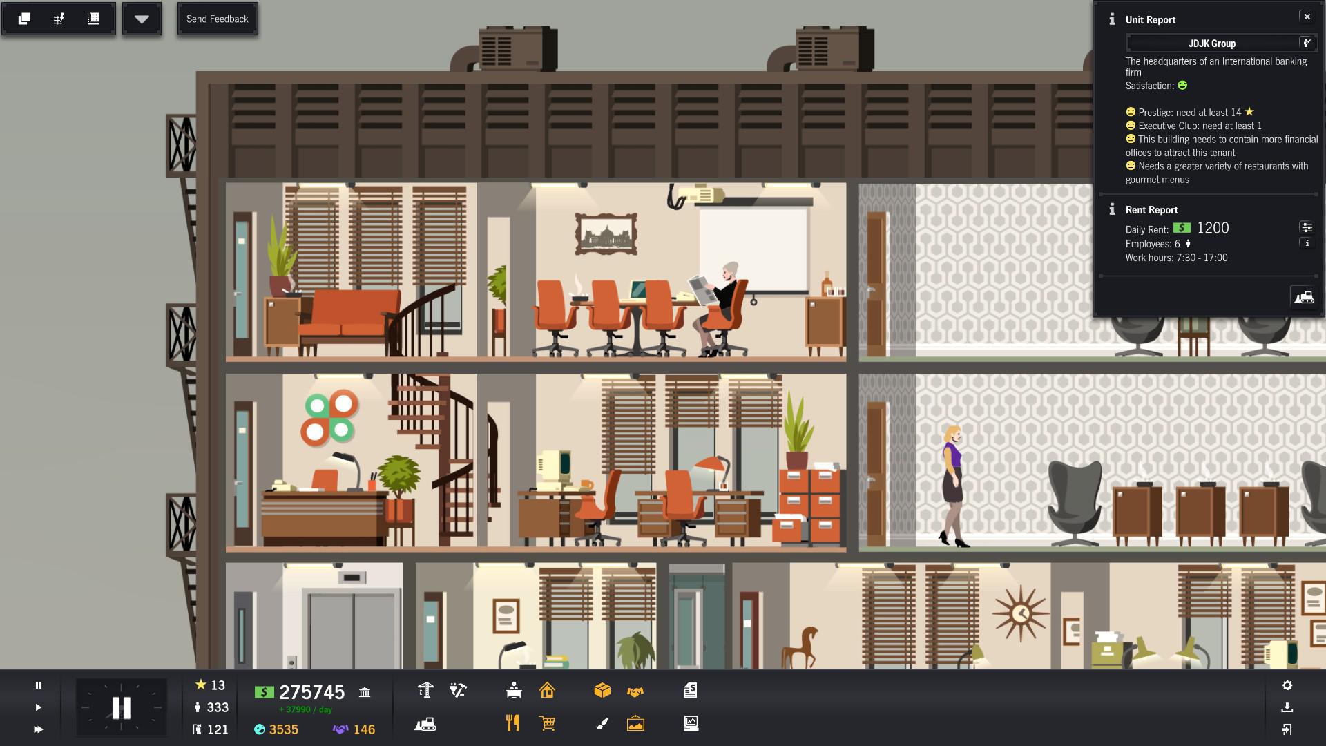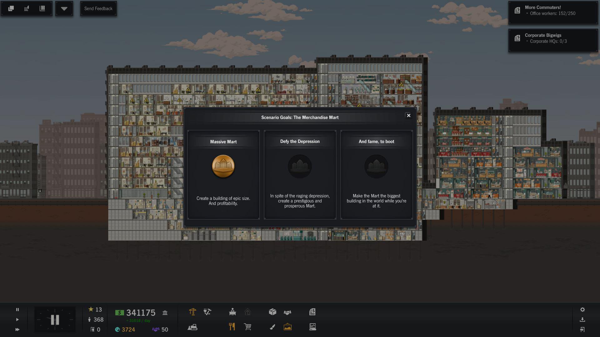 Project Highrise — это духовный наследник культовой SimTower, но с современным дизайном и куда более глубокой системой управления. Вы начинаете с пустого участка и нескольких миллионов в кармане (виртуальных, конечно), а заканчиваете... ну, на самом деле, вы никогда не заканчиваете! Ведь всегда можно добавить ещё один этаж с бассейном на крыше или заменить скучный магазин канцтоваров на экзотический спа-салон. Геймплей строится вокруг баланса: нужно продумывать инфраструктуру (лифты, электричество, вентиляция), подбирать правильный микс арендаторов (офисы, магазины, рестораны, жилые апартаменты), следить за их счастьем и, конечно же, считать прибыль. Не забывайте про исследование новых технологий и модернизацию старых помещений — ваш небоскрёб должен быть не только функциональным, но и стильным, чтобы затмить все другие здания в городе.