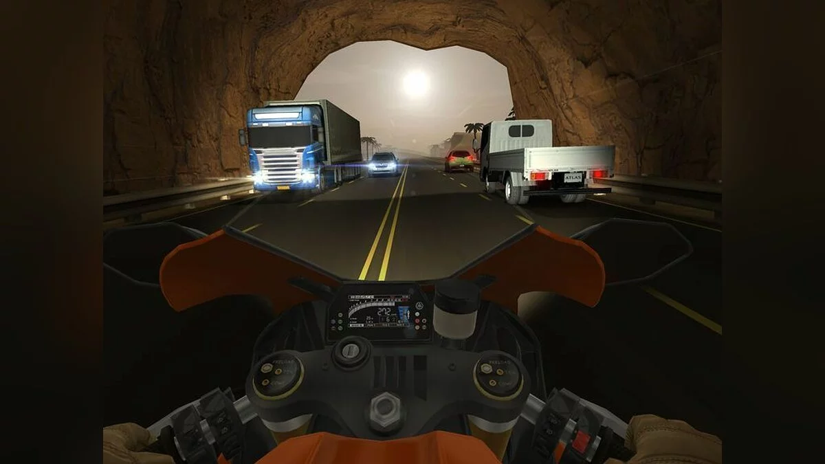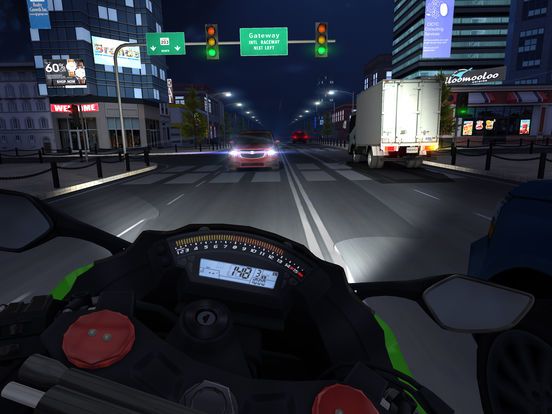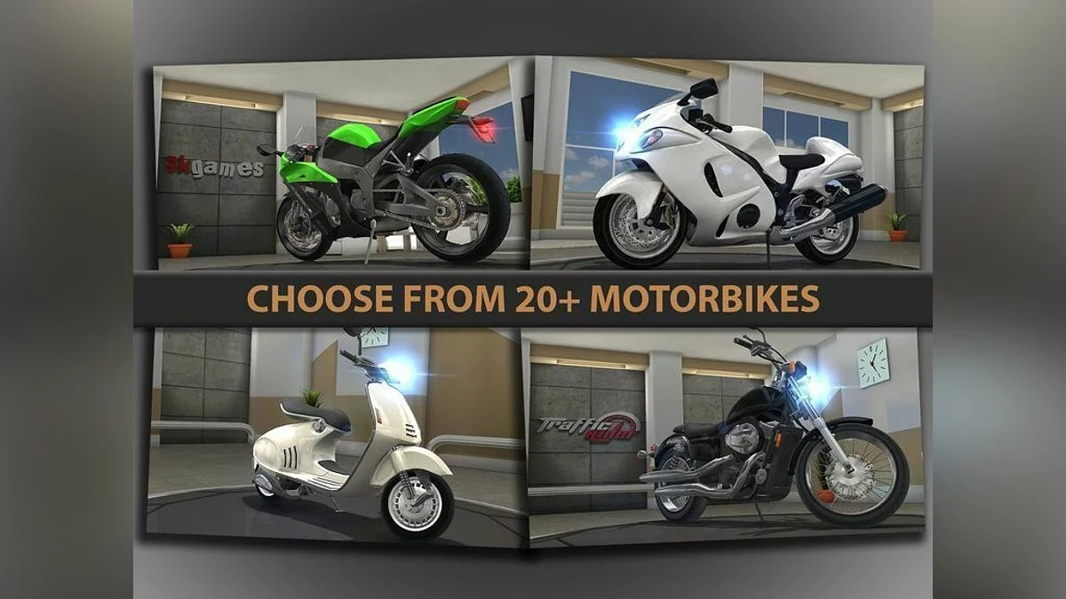 Traffic Rider - это мотоциклетный симулятор, в котором игроки должны гонять на байках по бесконечным дорогам, обгоняя других гонщиков. К услугам игроков - возможность играть с видом от первого лица, три десятка различных мотоциклов, полноценный режим карьеры, а также возможность соревноваться с другими игроками за место в таблице лидеров.