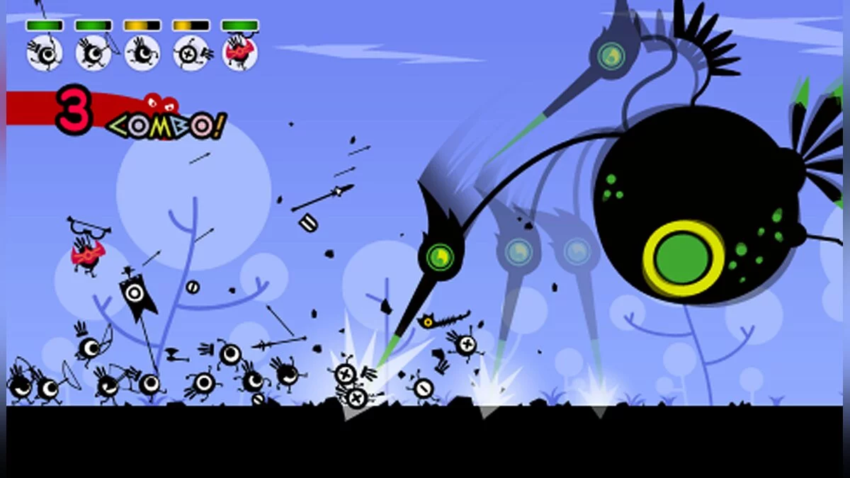 Забудьте про скучные стратегии, где вы просто тыкаете пальцем в карту! В Patapon 2 вы — не генерал, а настоящий рок-звезда на барабанах, дирижирующий армией самых обаятельных и безумных воинов в истории видеоигр. Представьте себе: вы — бог, а ваши подопечные, милые черноглазые Патапоны, слепо верят в ваш музыкальный талант. Они не понимают слов, но зато идеально чувствуют ритм! Ваша задача — отбивать чёткий барабанный бой (Pata-Pata-Pata-Pon!), чтобы заставить их маршировать, атаковать, защищаться или даже танцевать фанковый брейкданс прямо на поле боя. Это уникальное сочетание жанров — ритм-игра и тактическая стратегия — превращает каждое сражение в настоящий концерт, где победа зависит не от мощи меча, а от вашего чувства такта и координации.