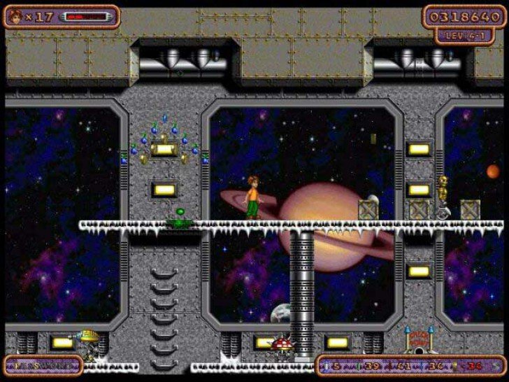 Геймплей Bud Redhead — это чистая, незамутненная платформерная классика. Вы будете бегать, прыгать, карабкаться по стенам и, конечно же, давить врагов ногами (а что, работает же!). На вашем пути встретятся не только злобные инопланетяне, но и всевозможные ловушки, головоломки и коварные пропасти, которые потребуют от вас ловкости и идеального тайминга. Всего в игре вас ждет 20 уровней, разбитых на четыре уникальных мира, каждый со своей атмосферой и боссом, который, поверьте, заставит вас попотеть. Это не просто игра, это проверка ваших рефлексов и терпения, упакованная в веселую и динамичную обертку.