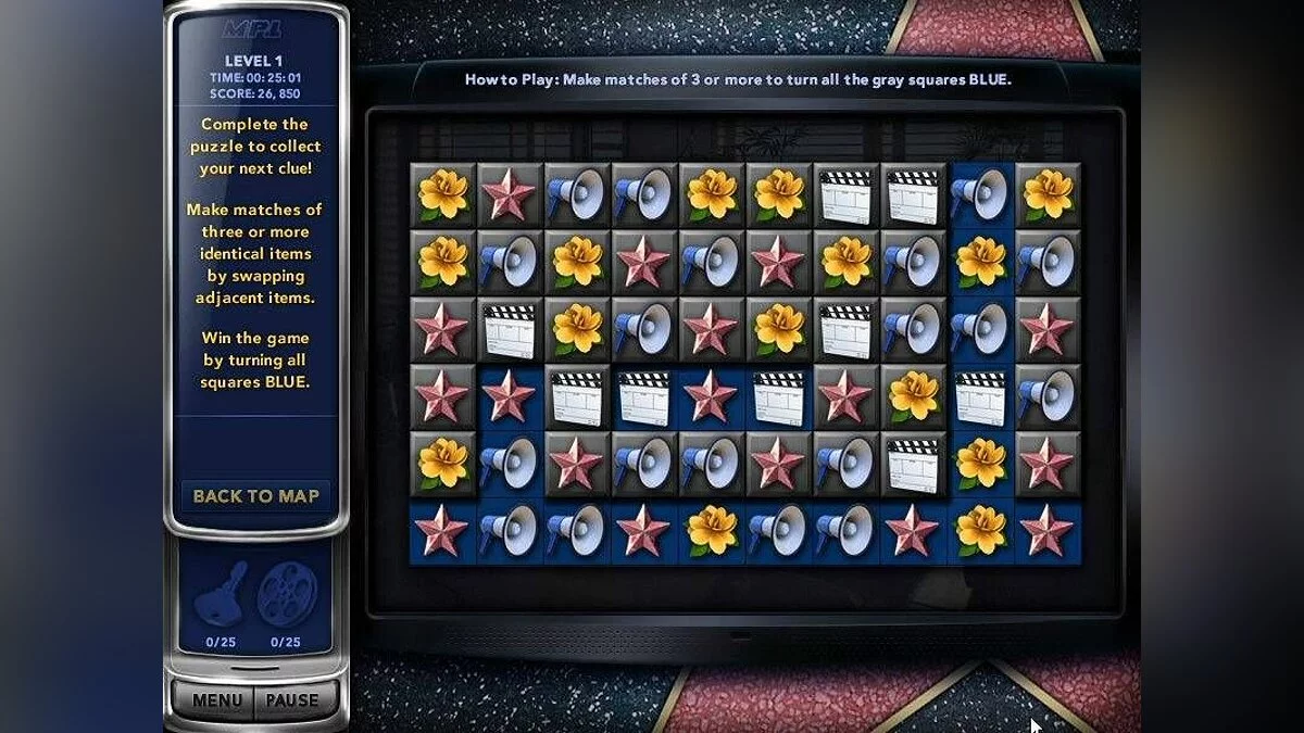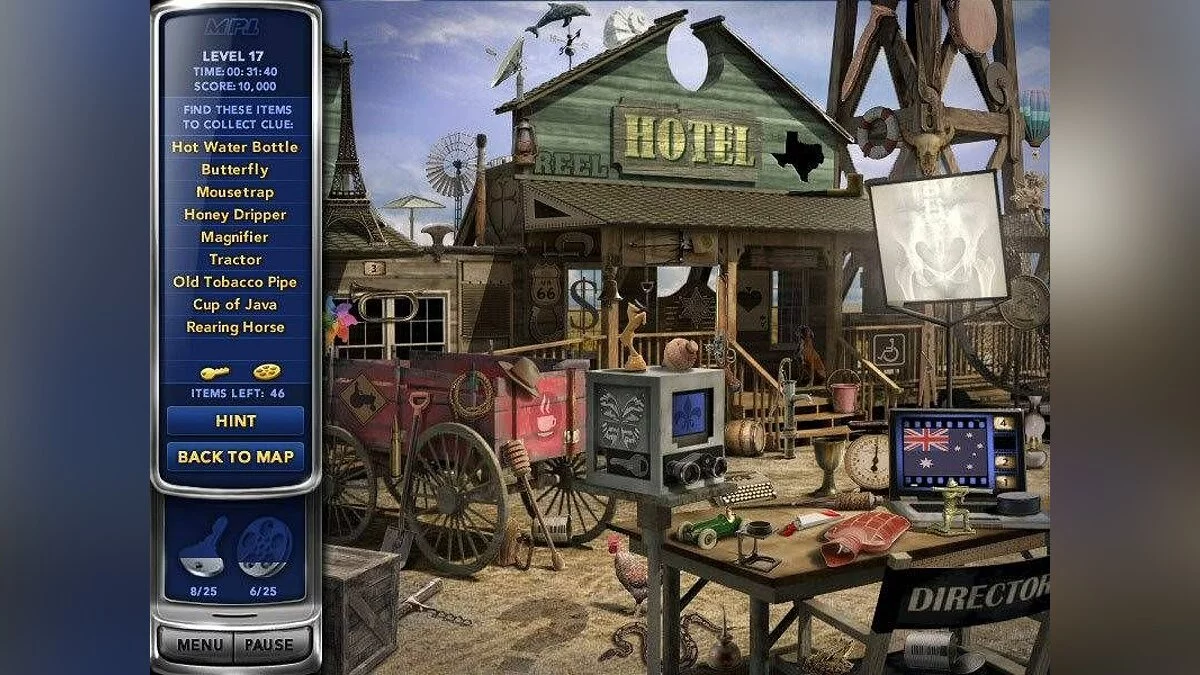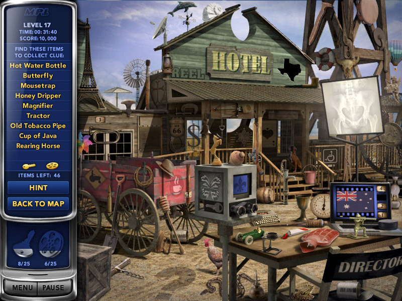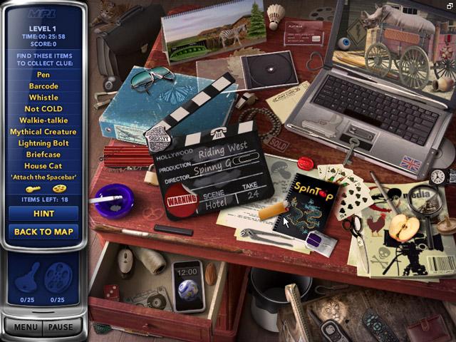 Геймплей Mystery P.I.: Lost in Los Angeles — это идеальный микс классических «находилок» и детективного квеста. Ваша главная задача — находить специальные ключевые предметы на каждой сцене: таинственные ключи и катушки с пленкой. Но не думайте, что все так просто! Каждая локация — это настоящий визуальный лабиринт, набитый сотнями деталей, среди которых нужно выловить именно то, что нужно. Не переживайте, если запутаетесь: в игре есть удобная система подсказок, которая мягко направит вас на верный путь (правда, за злоупотребление ею ваш детективский рейтинг слегка пострадает). А еще после прохождения основного задания на сцене вы можете включить режим «Бесконечные поиски», чтобы просто расслабиться и потренировать свой острый глаз, находя случайные предметы. Это как медитация, только с элементами Голливудского триллера!