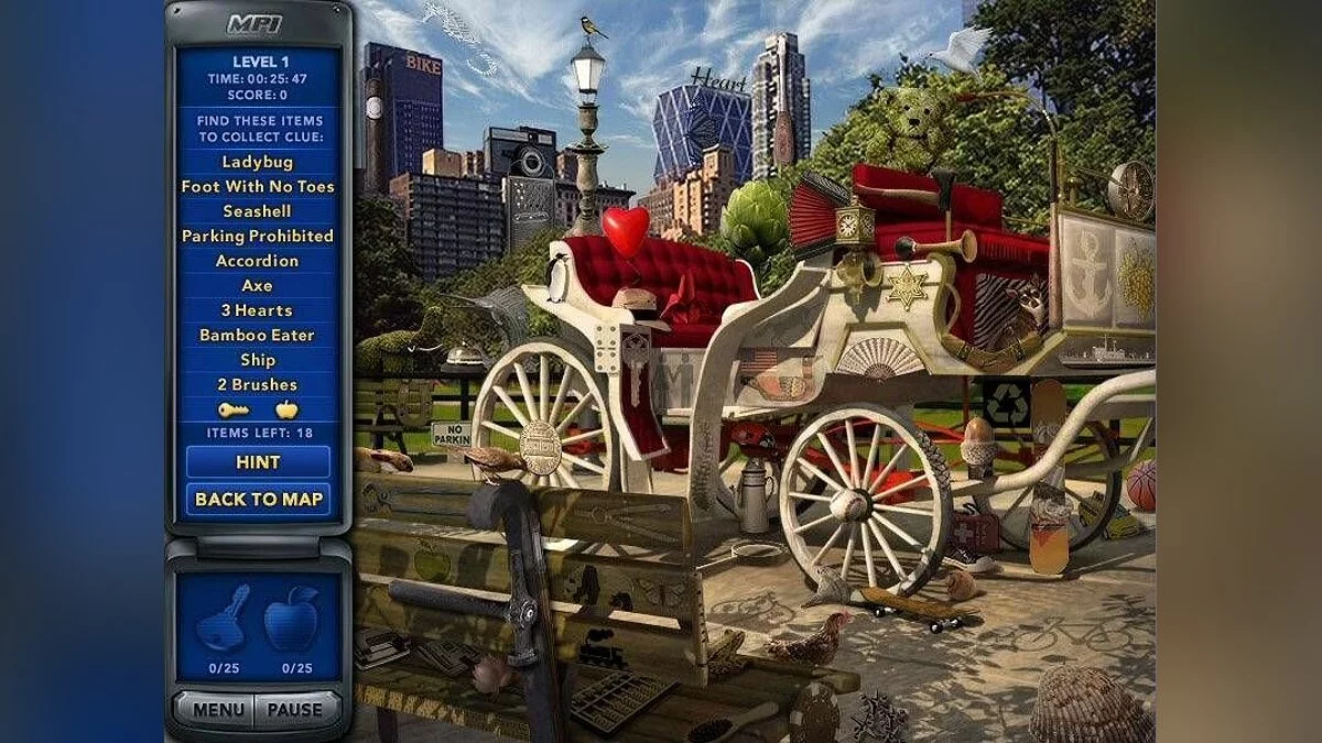 В Mystery P.I.: The New York Fortune вас ждёт более 25 уникальных локаций, от шикарных отелей до загадочных антикварных магазинов, каждая из которых набита под завязку всевозможными вещицами. Ваша задача — находить не только само завещание, но и ключевые улики, спрятанные среди 2100+ предметов. Геймплей классический для жанра hidden object: внимательно вглядывайтесь в экран, ищите странные несоответствия и не теряйте голову, даже когда находитесь в комнате, заваленной старыми газетами, статуэтками и чьими-то потерянными носками. Игра предлагает три режима прохождения, включая бесконечный режим для тех, кто просто не может нарадоваться процессу поиска яблок и ключей (да, это тоже часть головоломки!). Благодаря интуитивному управлению и понятным целям, Mystery P.I.: The New York Fortune отлично подойдёт как новичкам в мире игр "поиск предметов", так и опытным охотникам за спрятанными сокровищами.
