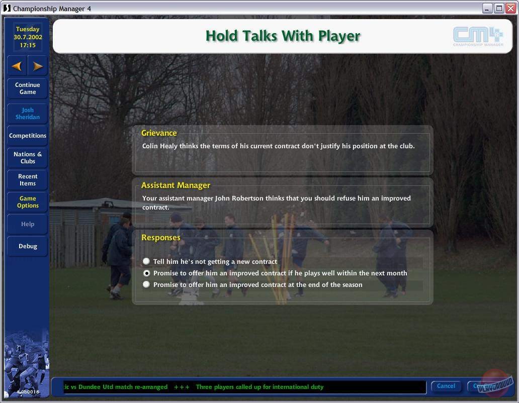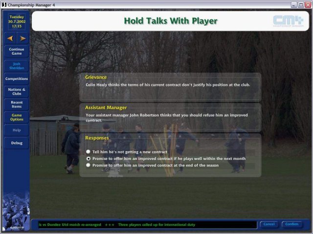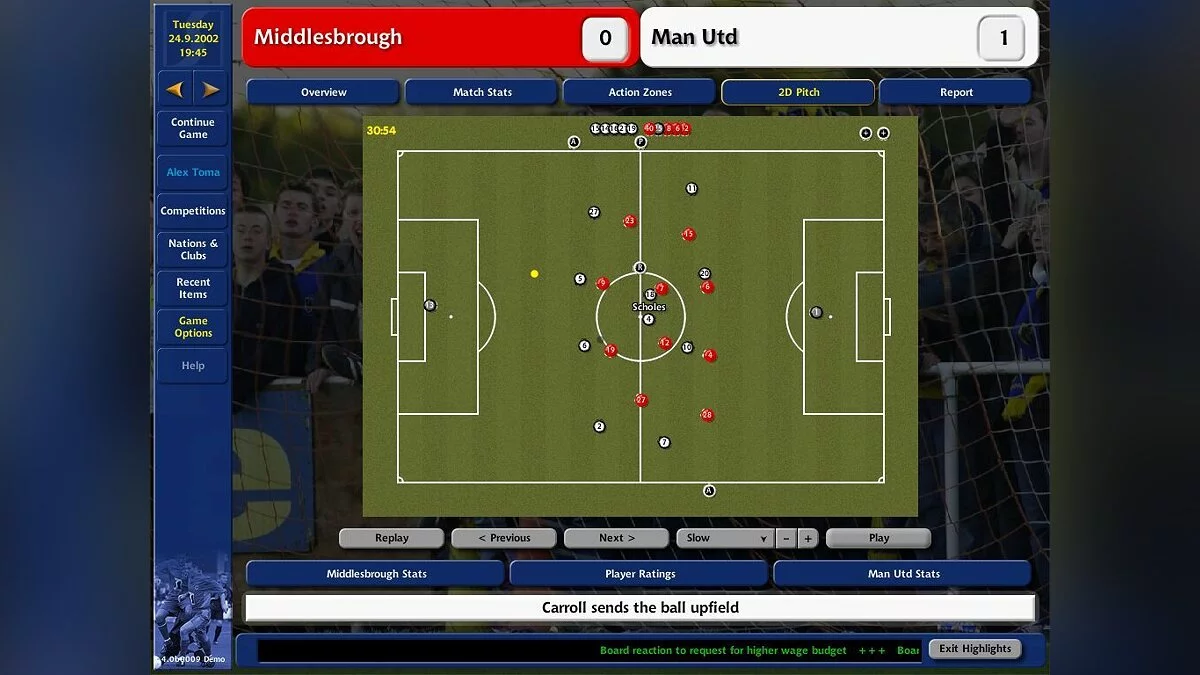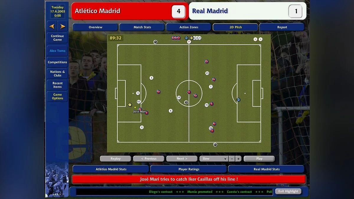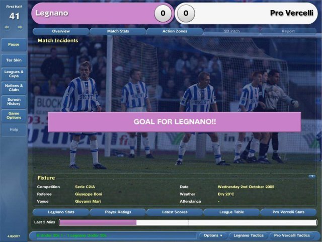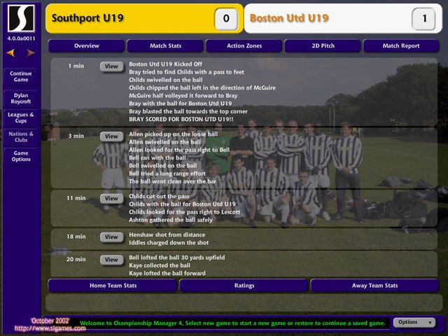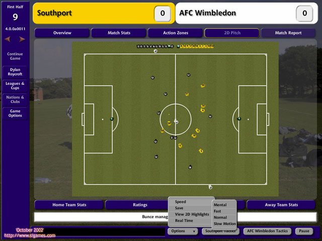 Впервые, в этой серии вы сможете наблюдать за ходом матча (правда, в двумерном виде), дабы оценивать правильность принятых вами тактических решений. Причем увидеть можно как все 90 минут, так и только голевые моменты. Также теперь интерфейс игры можно обтянуть скином.