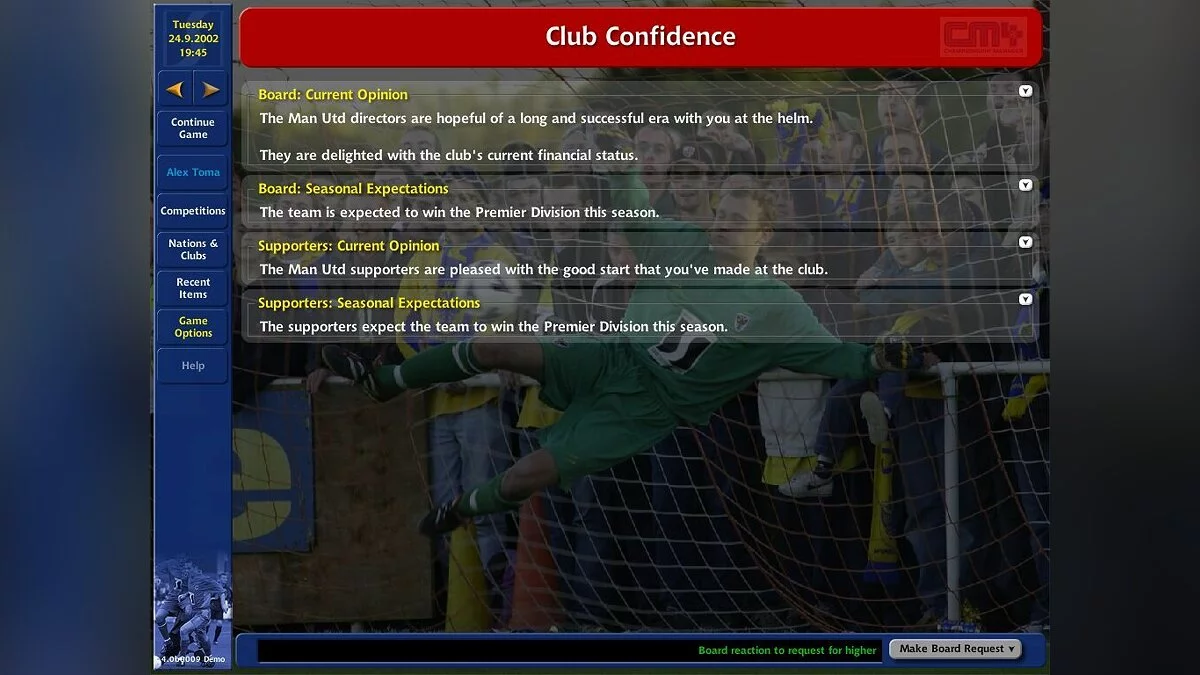 Четвертая часть знаменитого симулятора футбольной команды. Ты можешь стать директором команды или президентом клуба, а можешь заняться и тренерской работой.