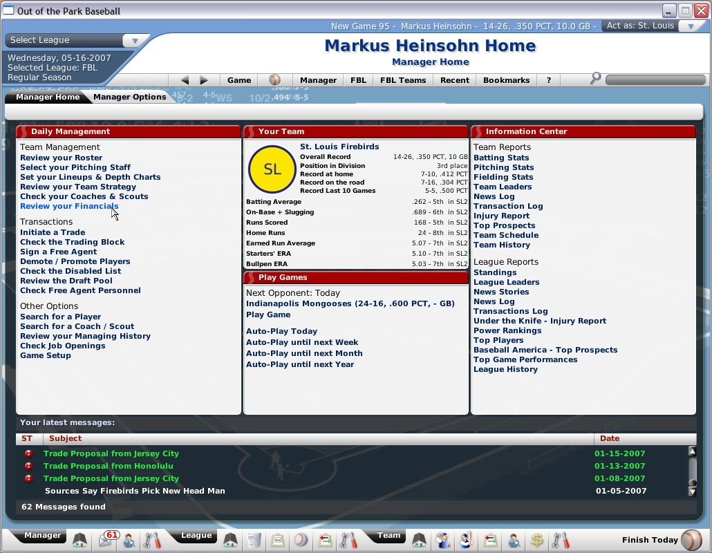 Out of the Park Baseball 2007 — управленческий симулятор посвященный бейсболу. Вы сможете создать свою собственную команду мечты и привести её к победе в турнире за кубок страны. Вас ожидают реально существующие игроки, много различных режимов, продвинутые тактические возможности и много, очень много параметров.