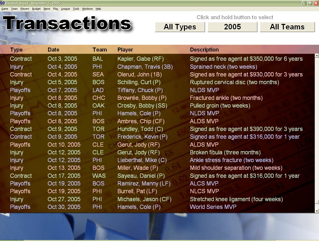 Baseball Mogul 2006 - симулятор менеджера бейсбольной команды. Игрок занимается инструктированием своих подопечных, указывает наилучшие варианты подающему, выстраивает тактику игры. Он штрафует членов команды за нарушение правил и поощряет за эффективную игру.