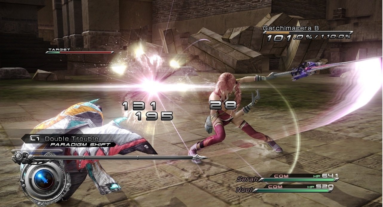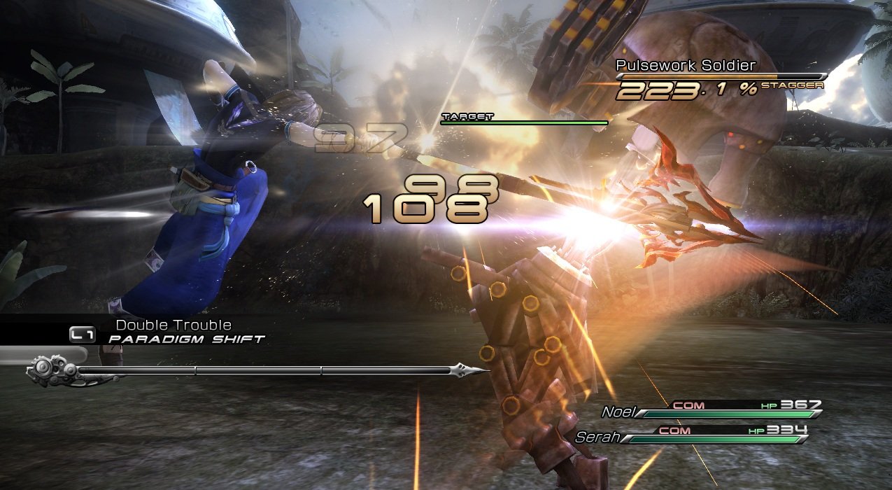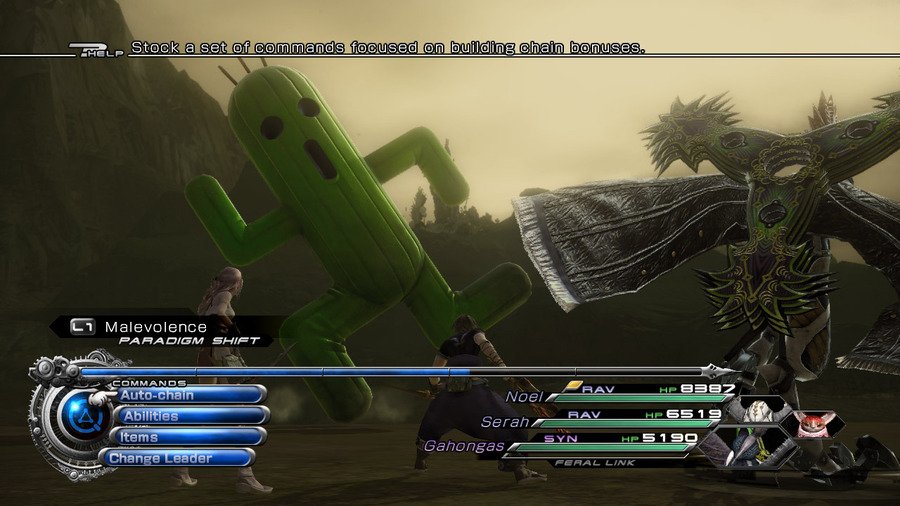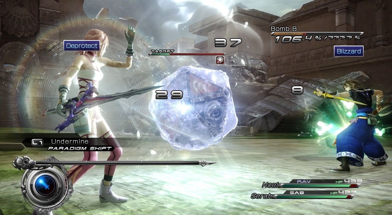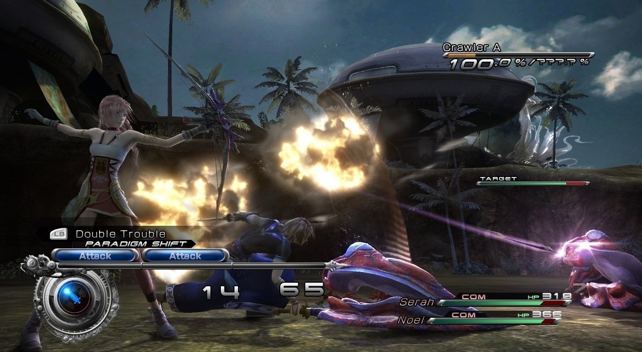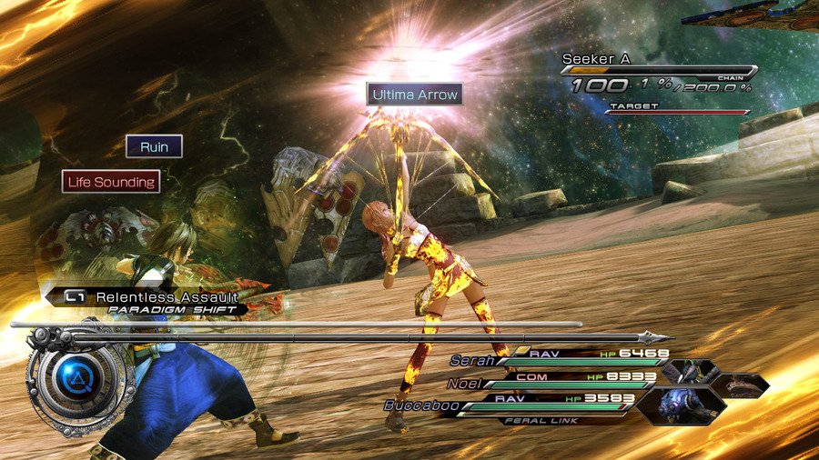 Геймплей Final Fantasy 13-2 — это настоящий конструктор для любителей исследовать. Вместо бесконечных коридоров вас ждут открытые локации, которые можно проходить в разном порядке, решая головоломки и открывая временные порталы. Хотите сначала наведаться в город будущего, полный неоновых огней и роботов, а потом запрыгнуть в доисторические джунгли, где на обед вам грозит стать местный тиранозавр? Пожалуйста! Игра щедро одаривает вас мини-играми, коллекционированием причудливых монстров (которых можно приручать и ставить в свою команду — да, вы можете воевать с собственным Чокобо!) и множеством концовок, так что ваше приключение точно не будет похоже на чужое. Это не просто JRPG, это целая песочница для фантазии, где каждое ваше решение может изменить ход истории.