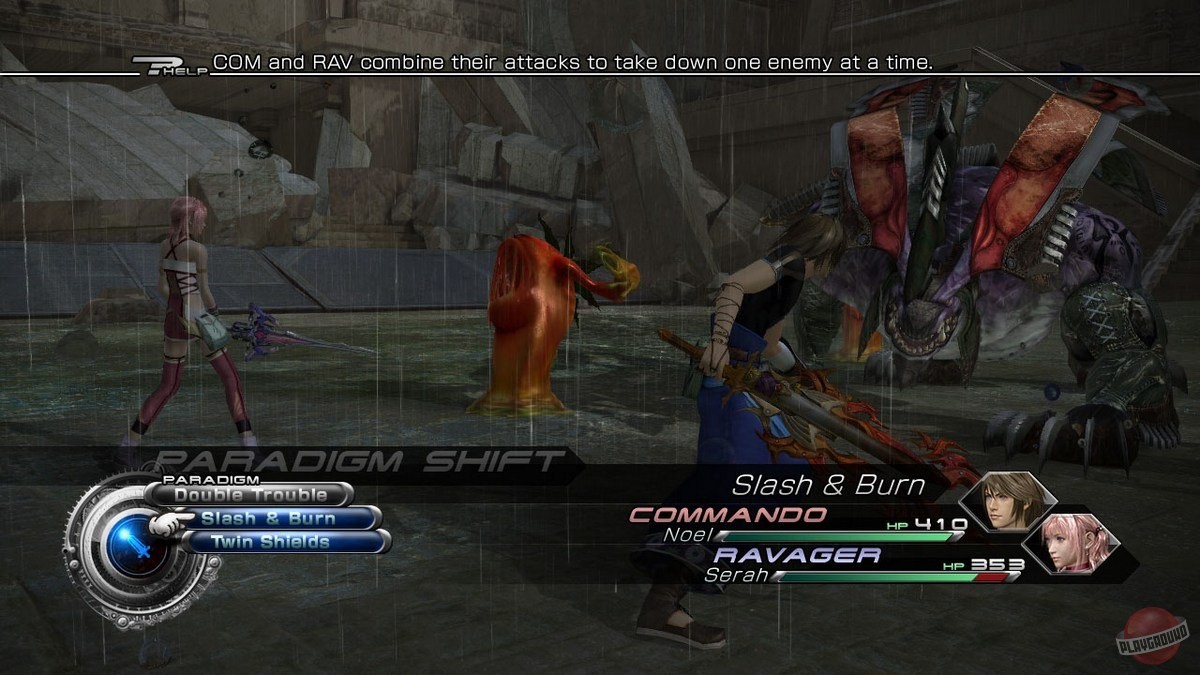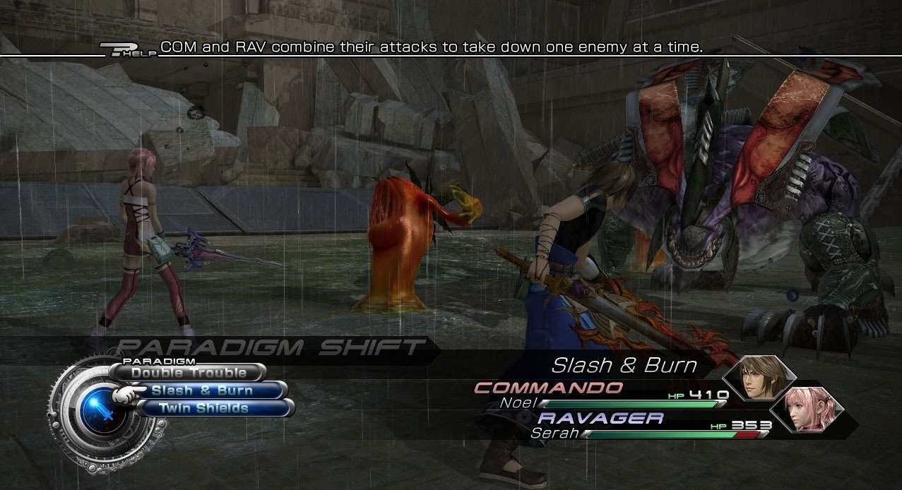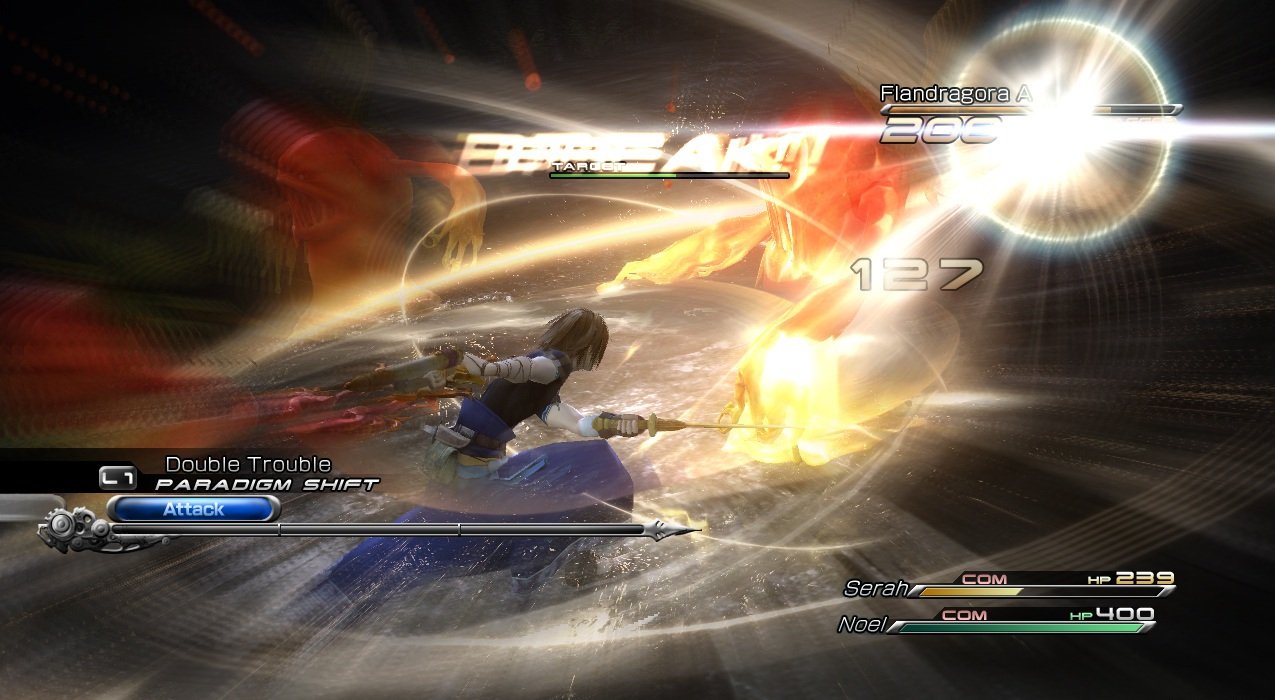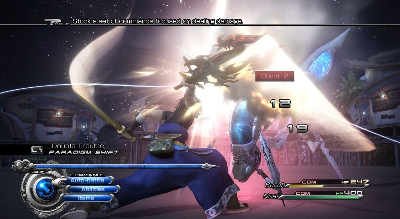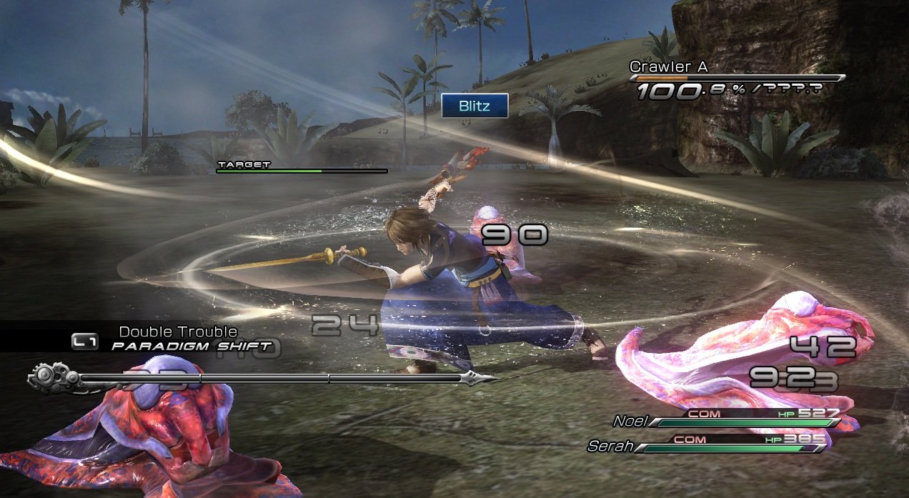 Геймплей Final Fantasy 13-2 — это настоящий конструктор для любителей исследовать. Вместо бесконечных коридоров вас ждут открытые локации, которые можно проходить в разном порядке, решая головоломки и открывая временные порталы. Хотите сначала наведаться в город будущего, полный неоновых огней и роботов, а потом запрыгнуть в доисторические джунгли, где на обед вам грозит стать местный тиранозавр? Пожалуйста! Игра щедро одаривает вас мини-играми, коллекционированием причудливых монстров (которых можно приручать и ставить в свою команду — да, вы можете воевать с собственным Чокобо!) и множеством концовок, так что ваше приключение точно не будет похоже на чужое. Это не просто JRPG, это целая песочница для фантазии, где каждое ваше решение может изменить ход истории.