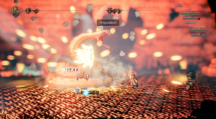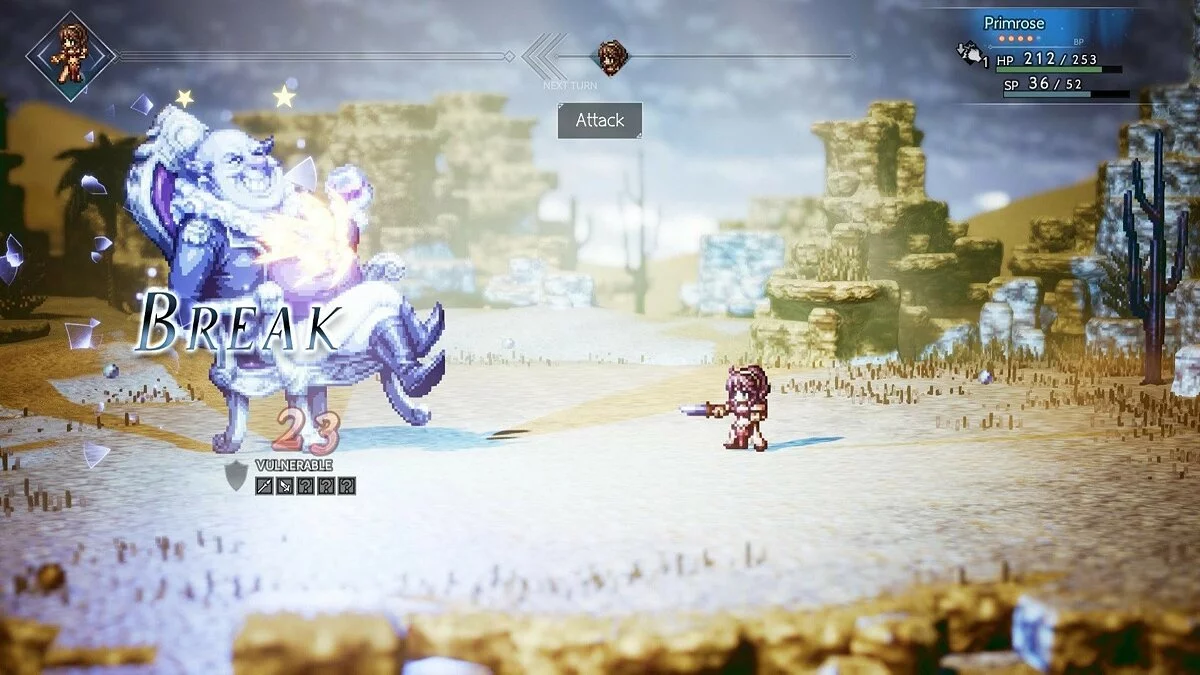 Геймплей Octopath Traveler — это идеальный микс ностальгии по классическим японским RPG и современных фишек. Графика здесь — отдельный шедевр, получивший название HD-2D: пиксельные герои бегают по трёхмерным фонам, создавая поистине сказочную атмосферу, от которой невозможно оторваться. Боевая система пошаговая, но далеко не примитивная. Здесь всё строится на механике «брони» и «пробивания». У каждого врага есть щит из определённых элементов или типов оружия, и чтобы его сломать и оглушить, нужно подобрать правильный ключик. Это как в жизни: если не знаешь, чем открыть замок, просто попробуй все гаечные ключи подряд! Собирайте свою команду из четырёх персонажей, комбинируйте их таланты и вторичные классы, чтобы создать непобедимый отряд, способный справиться с любым боссом, даже если тот выглядит как переваренный пончик.