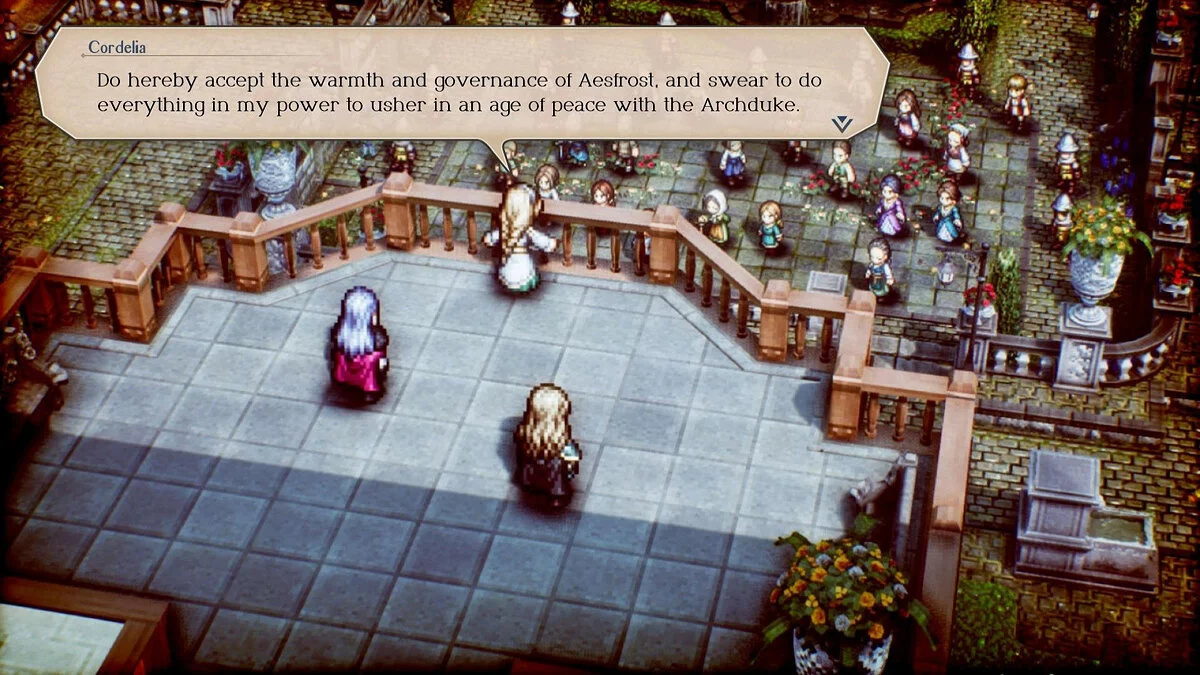 Triangle Strategy - это пошаговая тактическая RPG в духе Fire Emblem или Final Fantasy Tactics. Игроки перемещают своих персонажей по очереди, а поле боя расчерчено "тактической сеткой", по которой и нужно передвигаться. События игры разворачиваются на вымышленном континенте Норцелия. История фокусируется на новом конфликте, который разгорелся через тридцать лет после предыдущей войны, и крутится он вокруг борьбы за скудные ресурсы соли и железа. Несколько главных героев пытаются найти способ остановить войну, пока она не захлестнула весь континент.