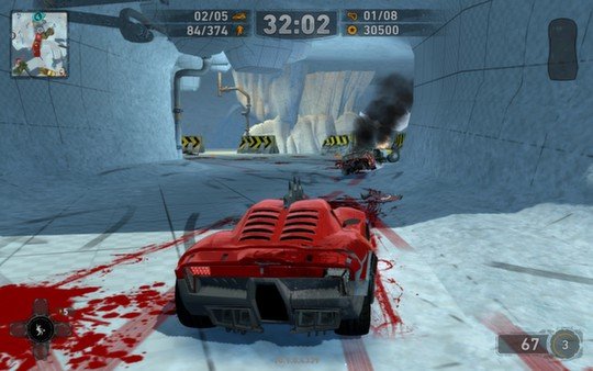 Ваша цель в Carmageddon: Reincarnation? Ну, технически, можно попытаться просто приехать первым. Но зачем так скучно, когда мир предлагает столько других вариантов? Вы можете победить, уничтожив всех соперников в пылу безумных гонок без правил, превратив их болиды в груду искореженного металла. Или же заняться более «гуманитарной» деятельностью — собирать очки, методично сбивая с дороги толпы невинных (ну, почти) пешеходов и даже животных. Да-да, в этом мире ваша машина — не средство передвижения, а инструмент хаоса и разрушения. Геймплей построен на простой, но гениальной идее: чем больше шума, дыма и жертв вы оставите позади себя, тем выше ваш рейтинг. А еще в игре есть фирменные «пауэр-апы» — специальные способности, которые превращают ваш автомобиль в настоящую машину апокалипсиса, например, позволяя отбрасывать врагов мощными пружинами или превращать их в металлолом одним нажатием клавиши.