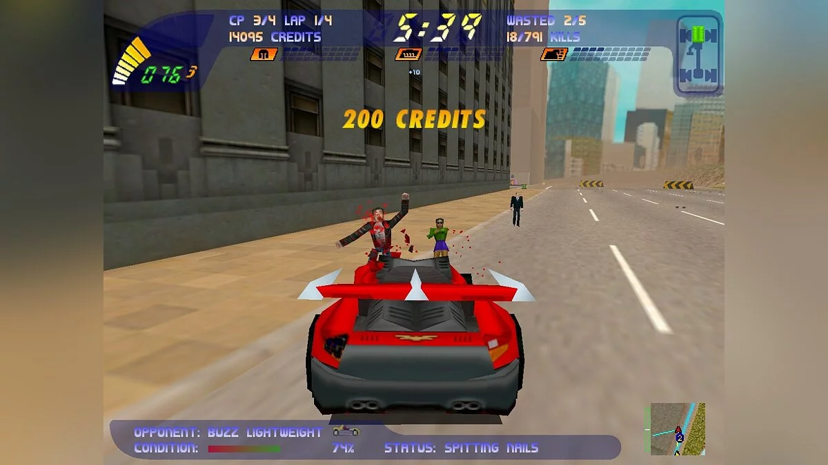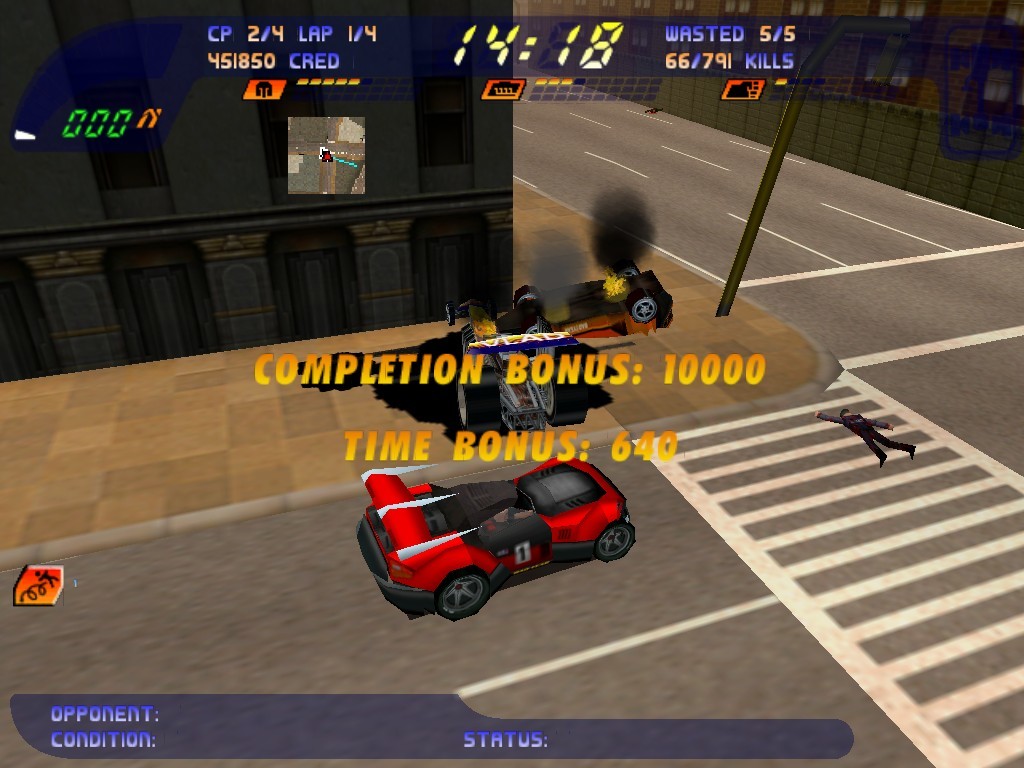 В каждом уровне есть временной лимит, но можно заработать больше времени пересекая контрольные пункты, получая усиления, нанося урон/разбивая машины оппонентов и убивая пешеходов(бонусы будут начислятся за стиль).