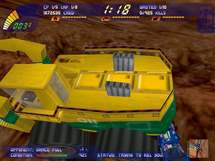 Все эти действия также будут вам давать кредиты, которые можно использовать на починку и восстановление машины (после падения в пропасть, например). Так же их можно тратить на обновление защиты, силы и атаки в магазине между гонками. Еще это время, когда можно поменять машины, если были получены новые.