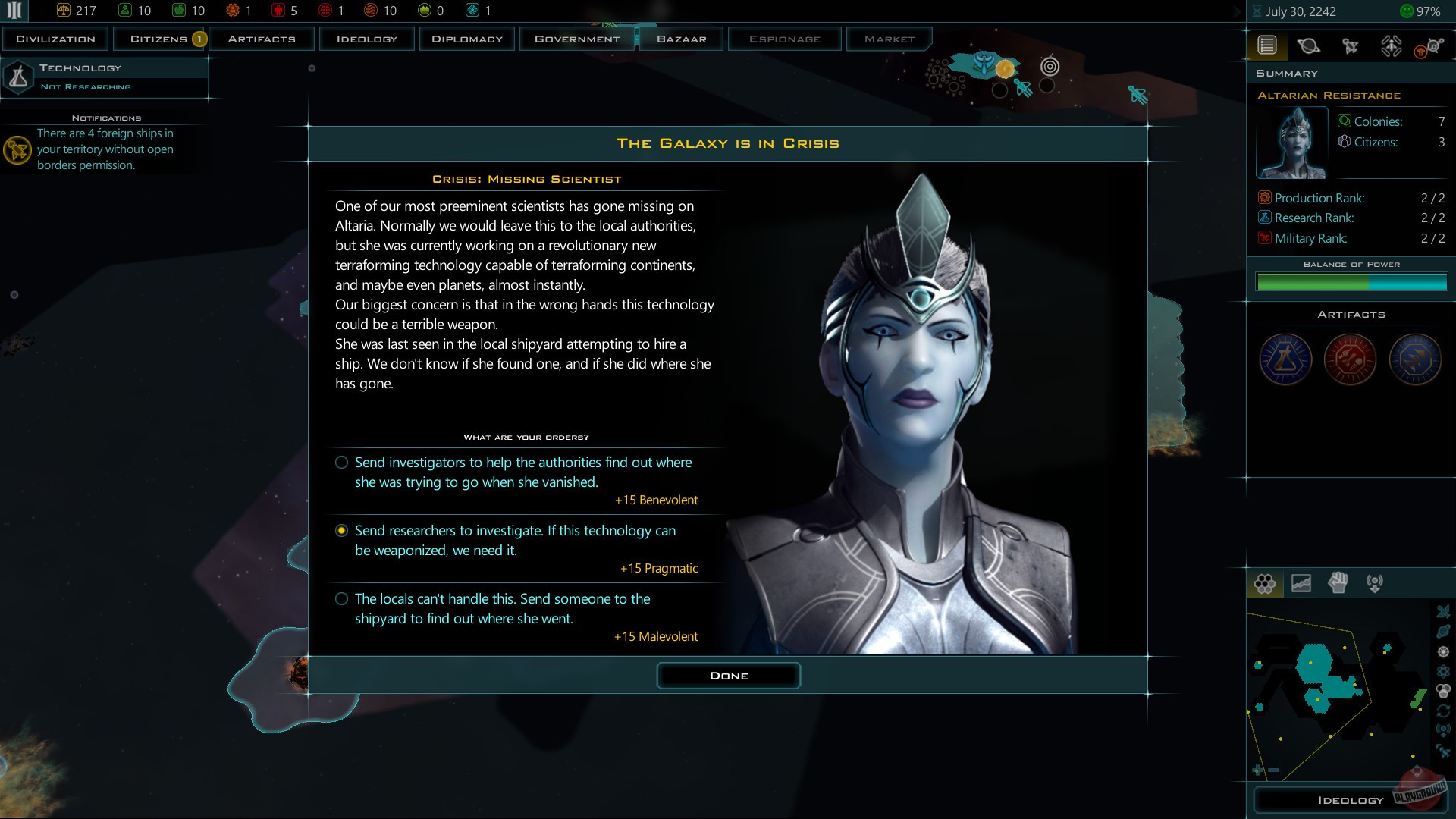 Ваш путь начинается с одного-единственного корабля и планеты, но куда он вас заведёт — зависит только от вас. Хотите стать просвещённой цивилизацией, распространяющей знания и культуру через галактическую сеть? Пожалуйста! Мечтаете о создании непобедимого флота из кораблей собственной уникальной конструкции, которые будут внушать страх соседним звёздным системам? Легко! А может, вы мастер теневой дипломатии и предпочитаете свергать соперников изнутри, используя шпионов и хитроумные политические интриги? В Galactic Civilizations 3 для этого есть все инструменты. Одна из самых крутых фишек — это система проектирования кораблей: вы не просто выбираете из готовых моделей, а конструируете каждый боевой крейсер, исследовательский зонд или колонизационный модуль с нуля, как настоящий инженер-бог. И да, ваши враги будут судорожно перестраивать свои флоты, пытаясь понять, как вы умудрились создать летающий апокалипсис с лазерами на палочках.