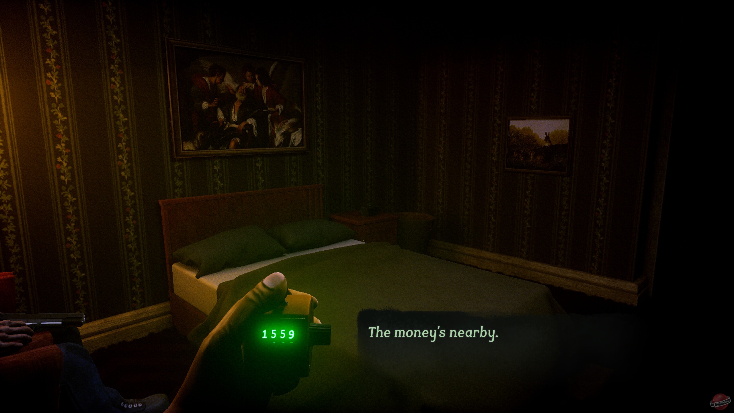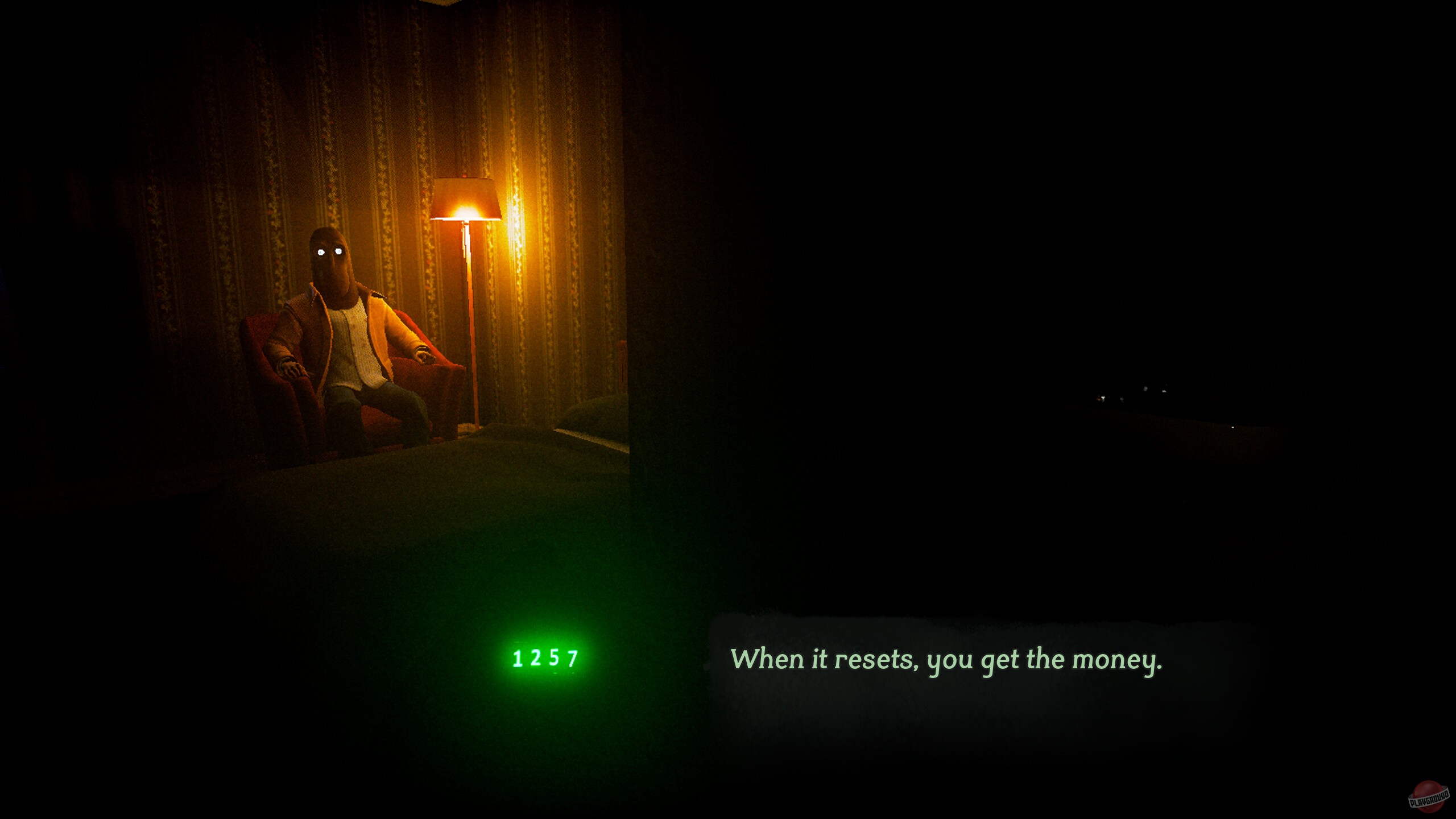 В полумраке гостиничного номера вас ожидает встреча с кошмаром. Тусклый свет едва освещает обшарпанные стены, а в углу, словно часть теней, притаилась жуткая фигура в маске. Её глаза — два бездонных провала, неотрывно следят за каждым вашим движением. В руках незнакомца — старый механический счётчик, который он молча протягивает вам.