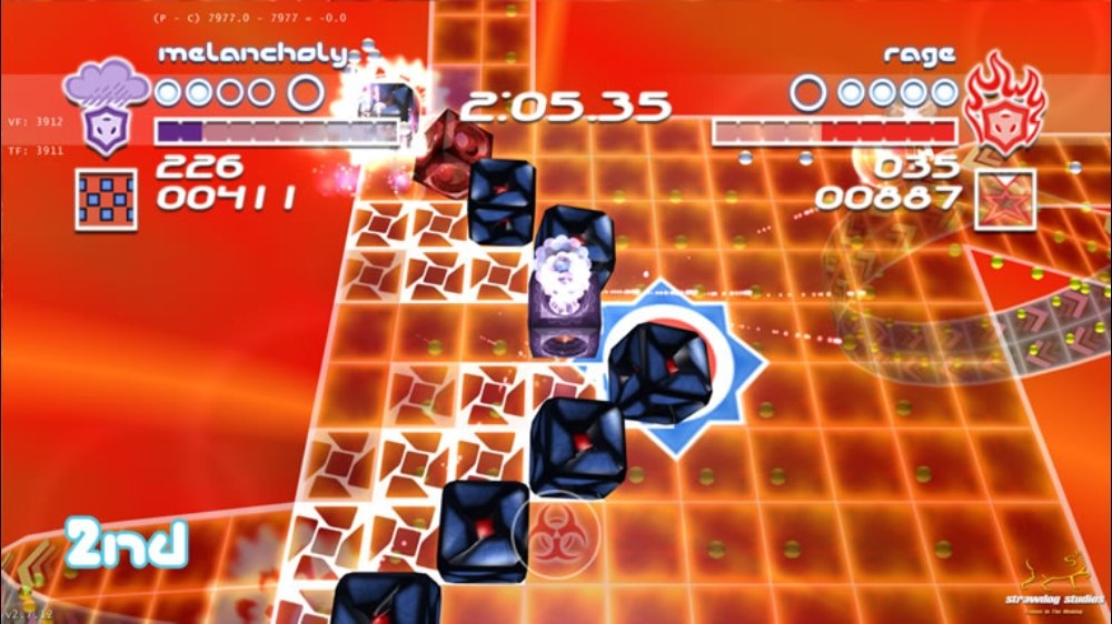 Забудьте про свои проблемы и погрузитесь в безумный мир Geon, где ваши чувства — это не просто слова, а маленькие кубики, готовые сражаться за вашу честь! Эта динамичная многопользовательская аркада, первоначально известная как Geon: Emotions на Xbox Live Arcade, предлагает вам выбрать одну из восьми эмоций — от яростного Гнева до мечтательной Блаженности — и устроить настоящий эмоциональный катаклизм на поле боя. Не переживайте, что вы выберете Меланхолию: хоть она и грустит, но в бою такая же беспощадная, как и её более жизнерадостные собратья. Суть игры проста, как дважды два, но увлекательна, как сериал, который невозможно остановить: вы катаетесь по прозрачной сетке, собираете энергетические шарики (пеллеты), чтобы зарядить свою эмоцию, а затем стреляете этим зарядом в противника, чтобы забить гол в его ворота. Побеждает тот, кто первым наберёт пять победных очков.