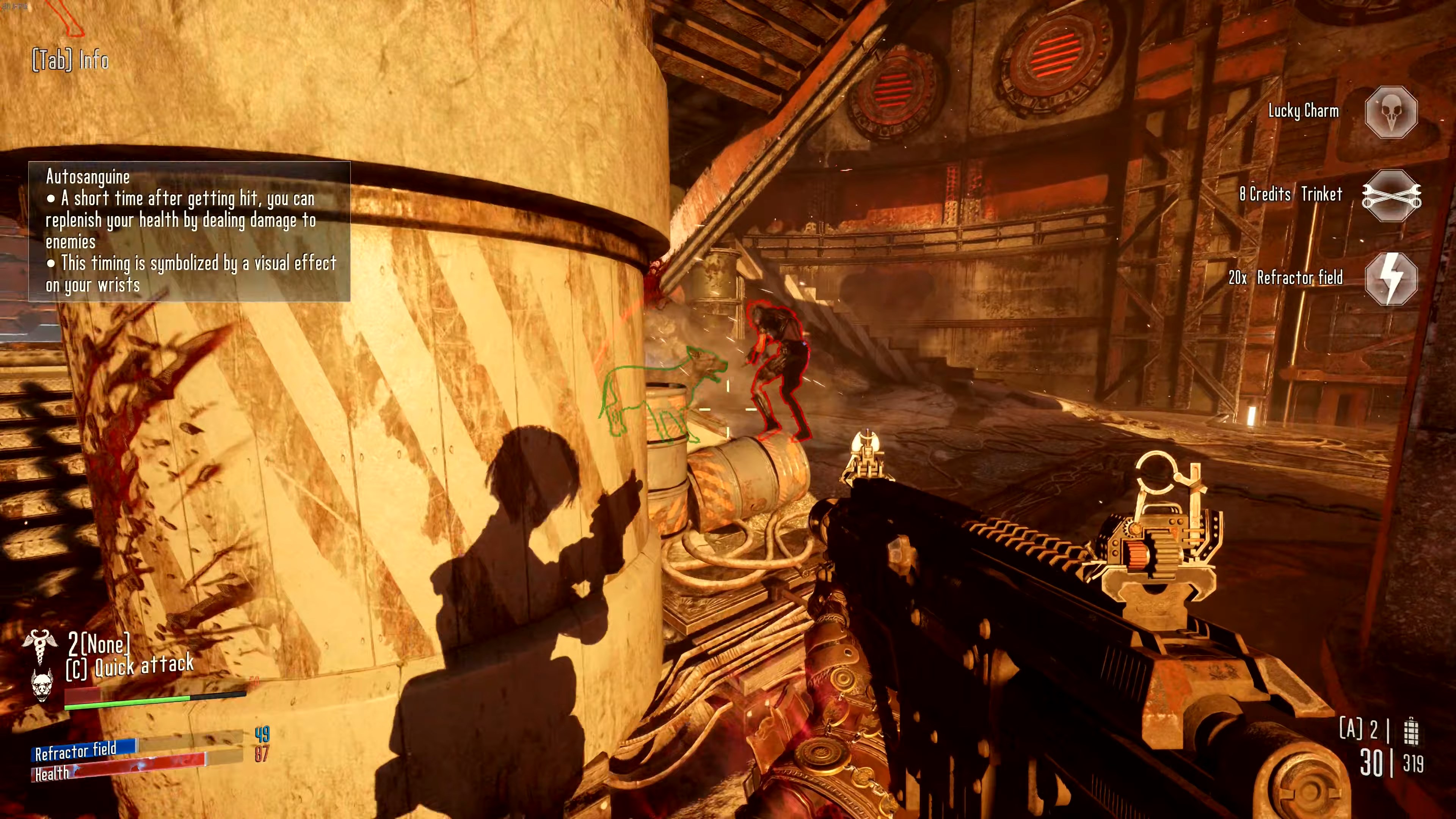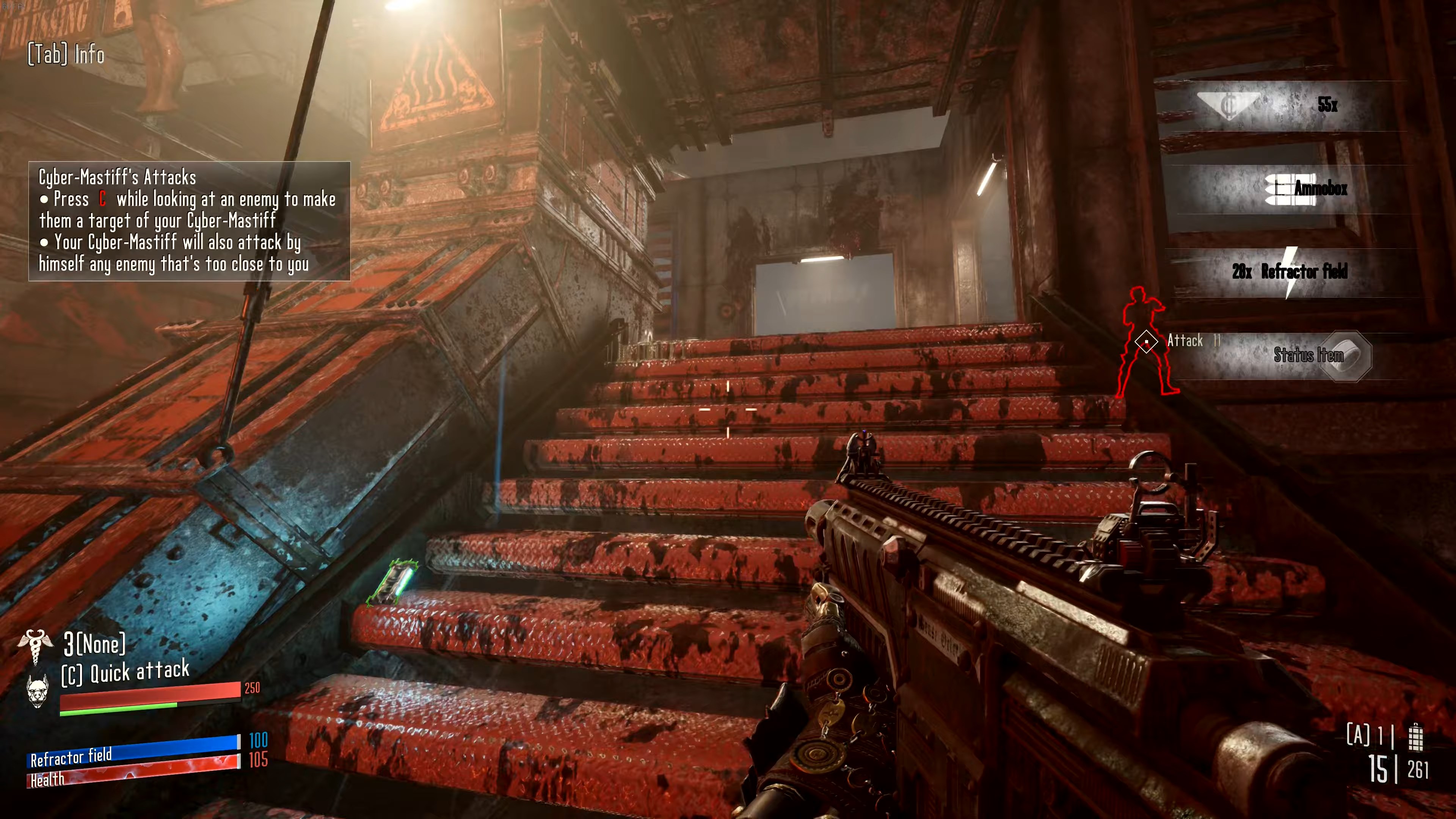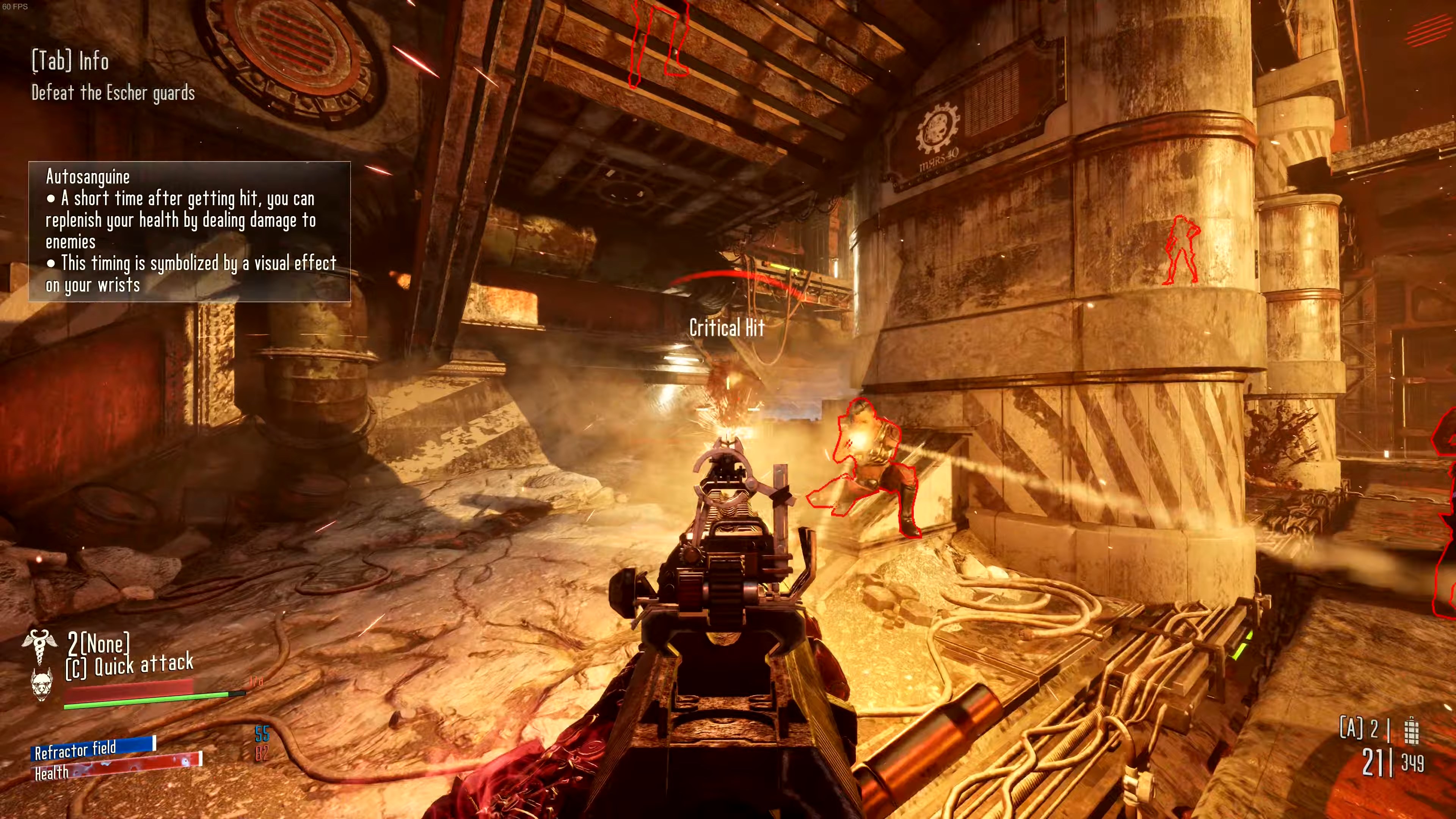Игрокам в Hired Gun открывается возможность лично взглянуть на мрачный мир вечной войны, где кроме обширного арсенала разнообразного оружия и помощи роботизированного пса можно надеяться лишь на свой крюк-кошку и умение быстро стрелять. Также герой носит в себе множество различных имплантантов, позволяющих, к примеру, бегать по стенам или прыгать через огромные пропасти. Орудие и имплантанты можно настраивать и улучшать под свой вкус.