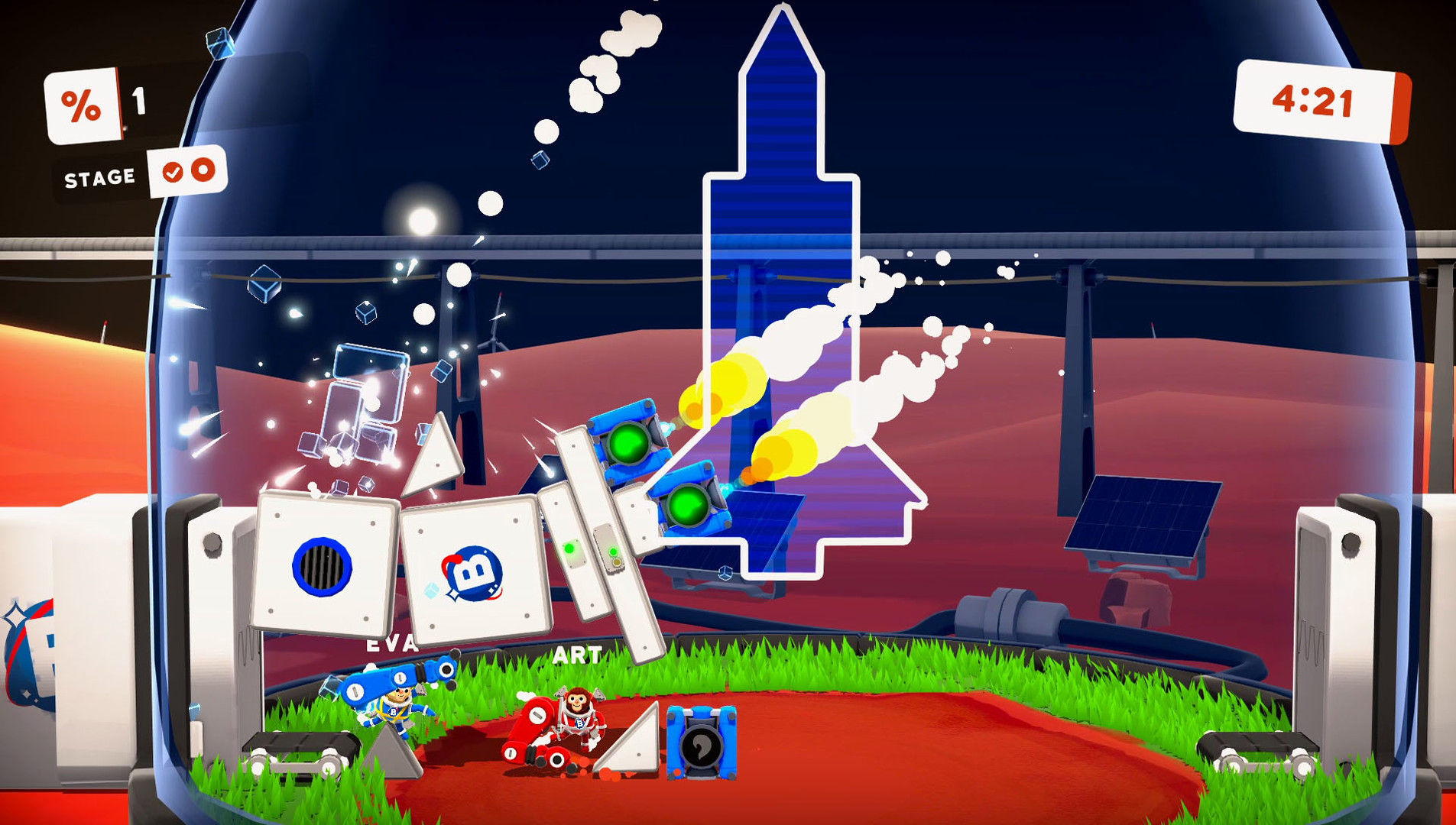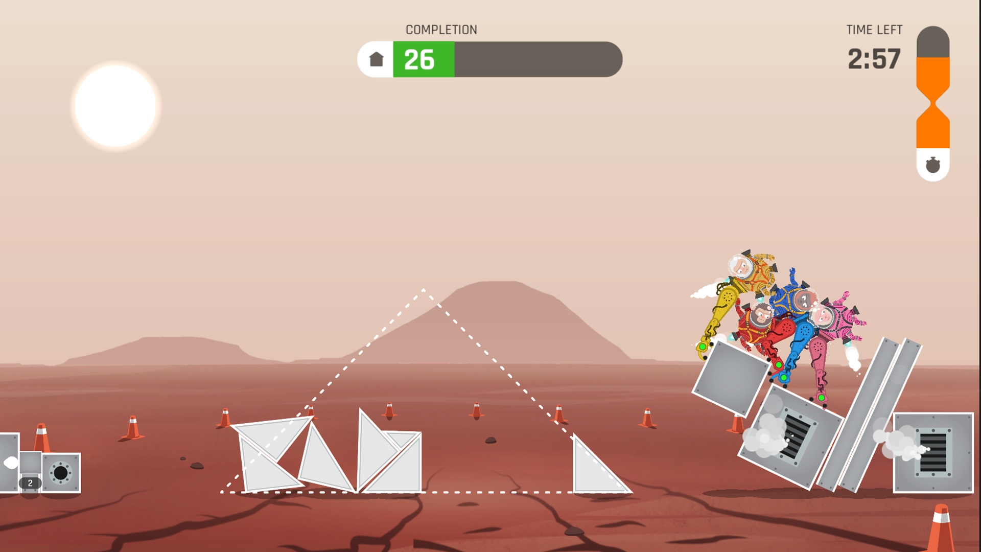 Bonkies — это идеальный микс жанров: головоломка, физическая песочница и party-игра для дружеской компании. Игра рассчитана на 1-4 игроков, и поверьте, чем больше вас, тем веселее (и хаотичнее) становится процесс. Вы можете играть как в локальном кооперативе на одном экране, так и онлайн с помощью Steam Remote Play Together, чтобы ваши друзья из другого города тоже могли внести свой вклад в разрушение вашей космической стройки. Каждый уровень — это новая головоломка, где нужно не просто перетаскивать блоки, а продумывать их расположение, учитывая гравитацию планеты, хрупкость соединений и, конечно же, неуклюжесть ваших пушистых героев. Это как Tetris, только вместо спокойного укладывания фигур вы участвуете в коллективном безумии, где каждый хочет помочь, но в итоге всё рушится.